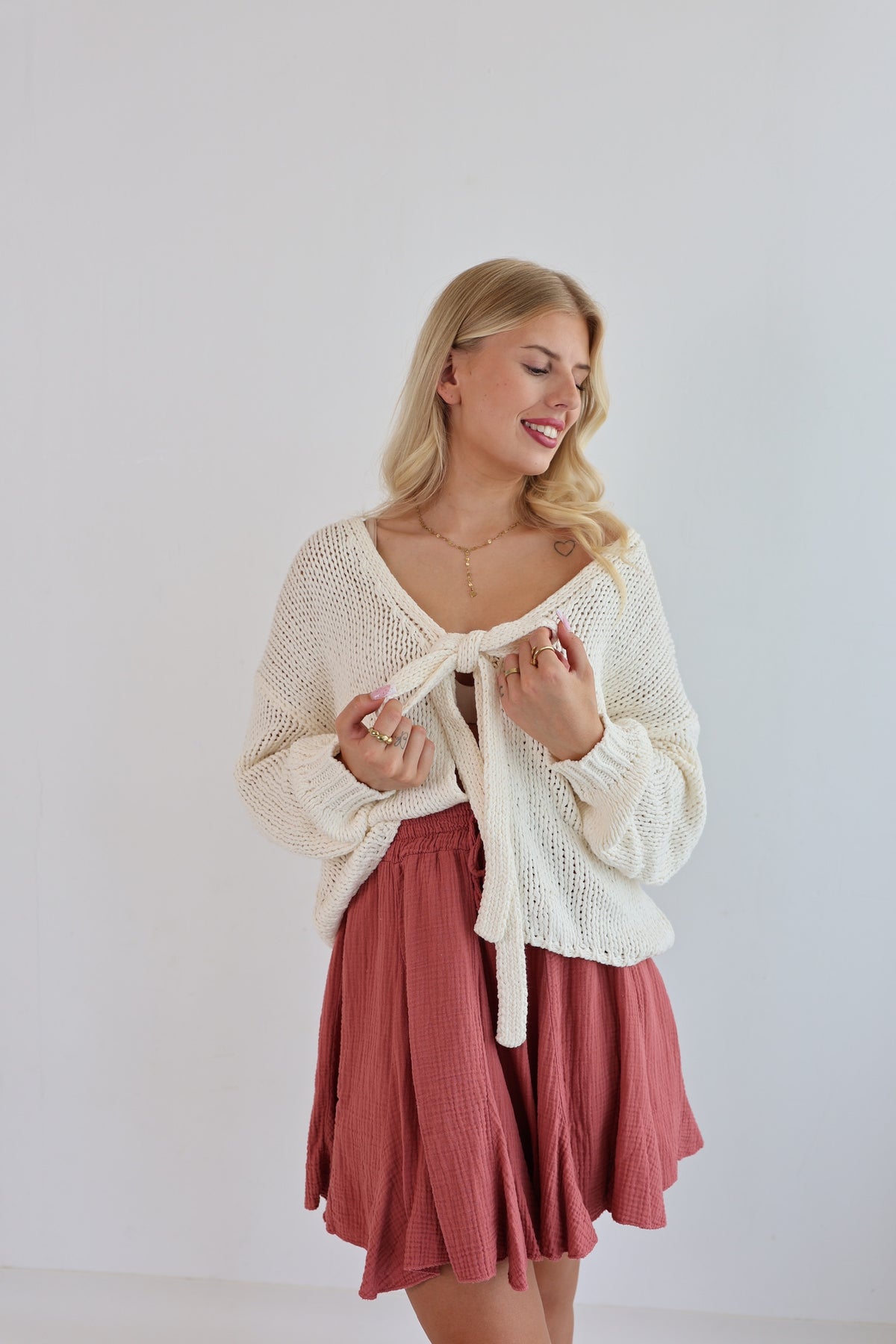 • der Cardigan kann dank der Schleifen offen oder geschlossen getragen werden