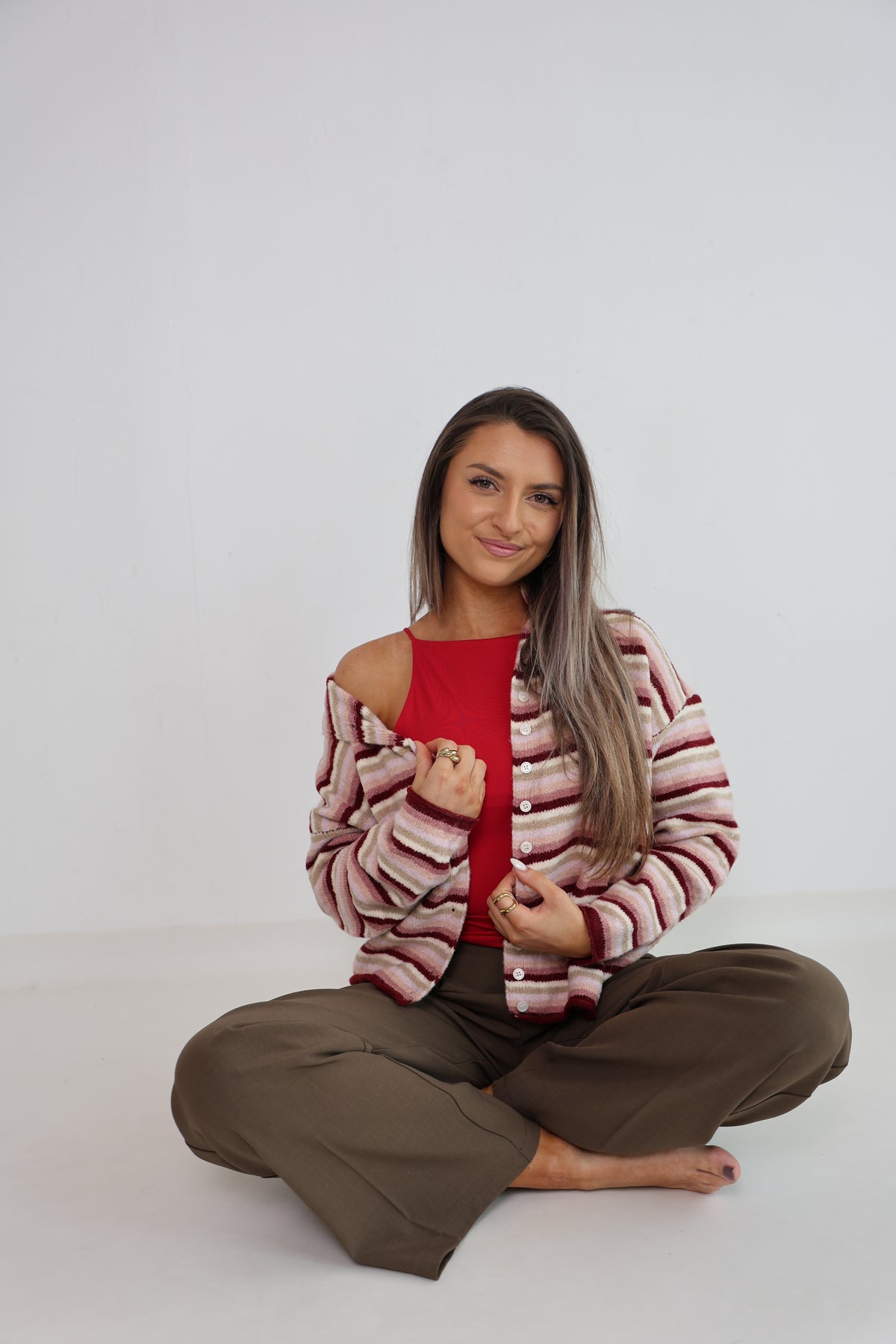 Gestreifte Strickjacke mit Mini-Stehkragen Hannah