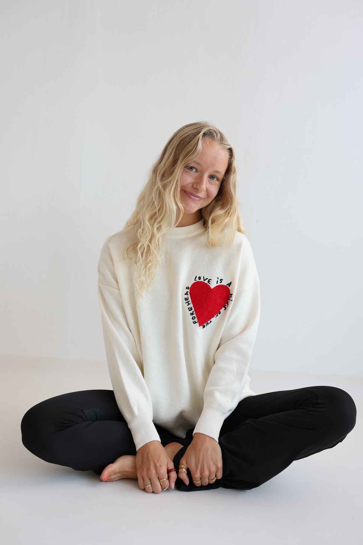 • Pullover mit dem Aufdruck „Love is a Kiss no the forehead“ auf der Vorderseite + Rückseite