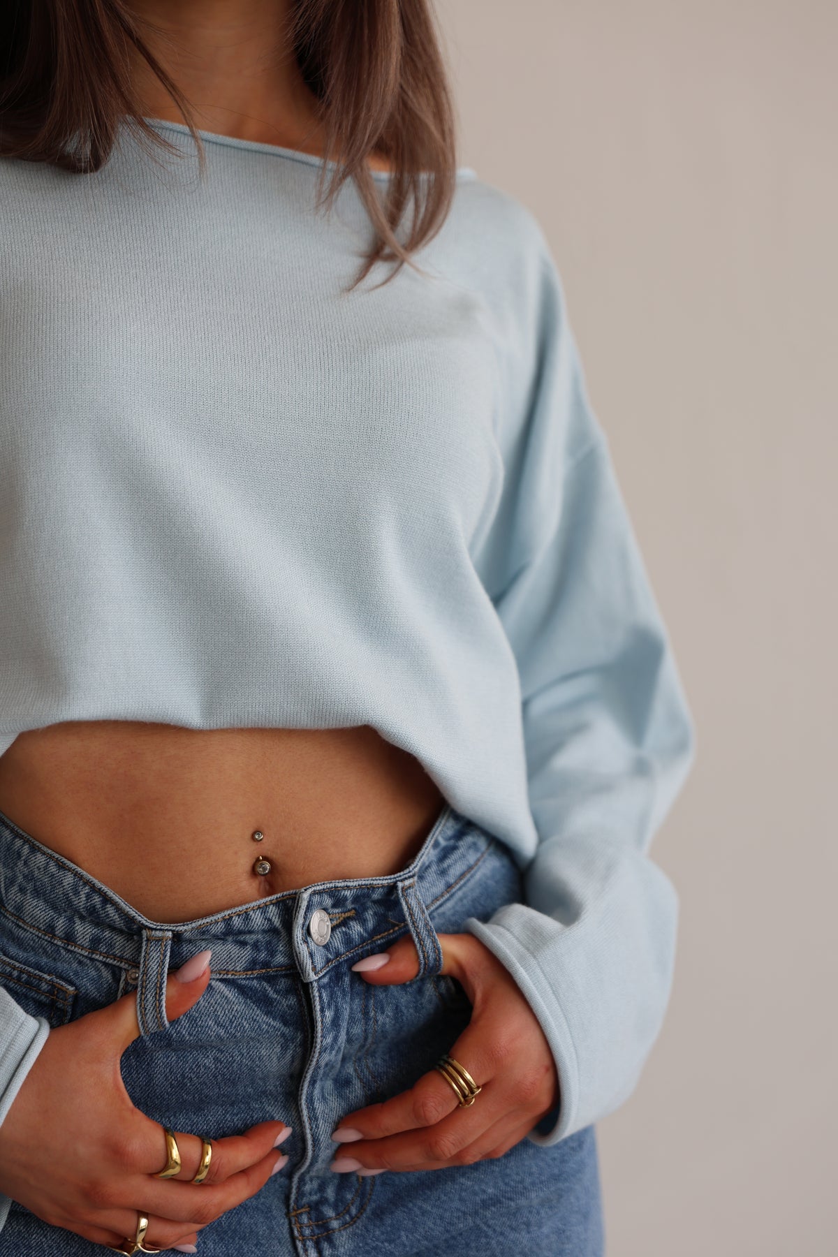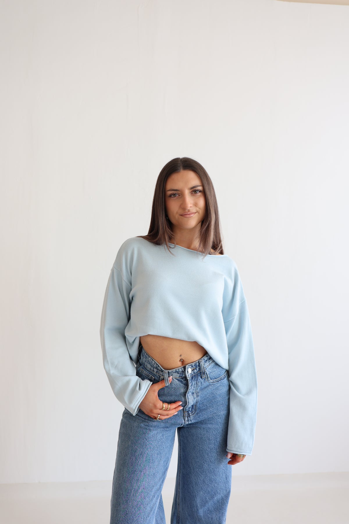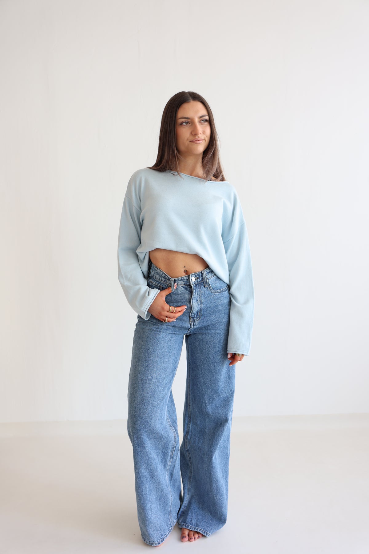 • lockerer Sweater mit großem Rundhalsausschnitt