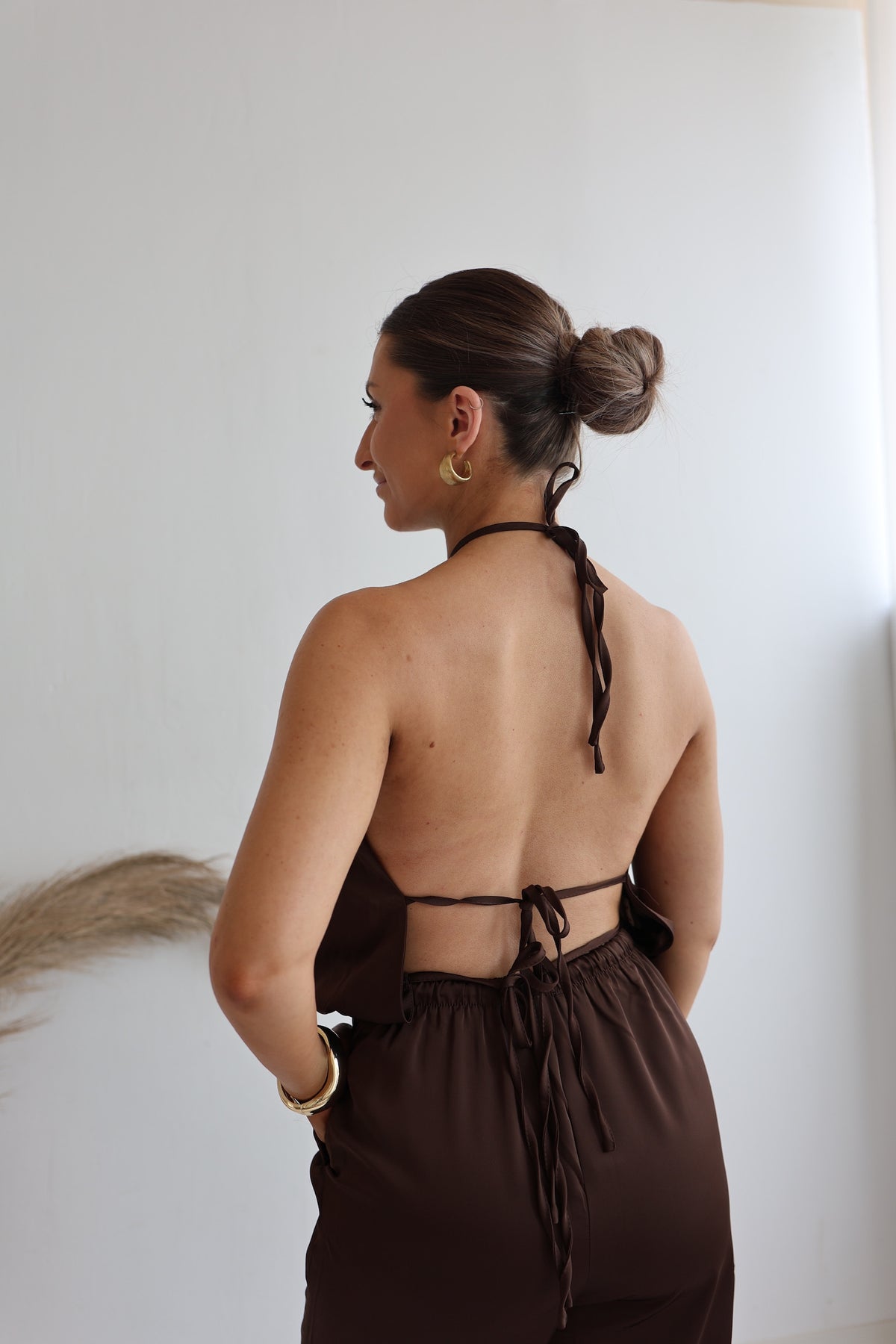 Rückenfreies Top in Satinoptik Coffee