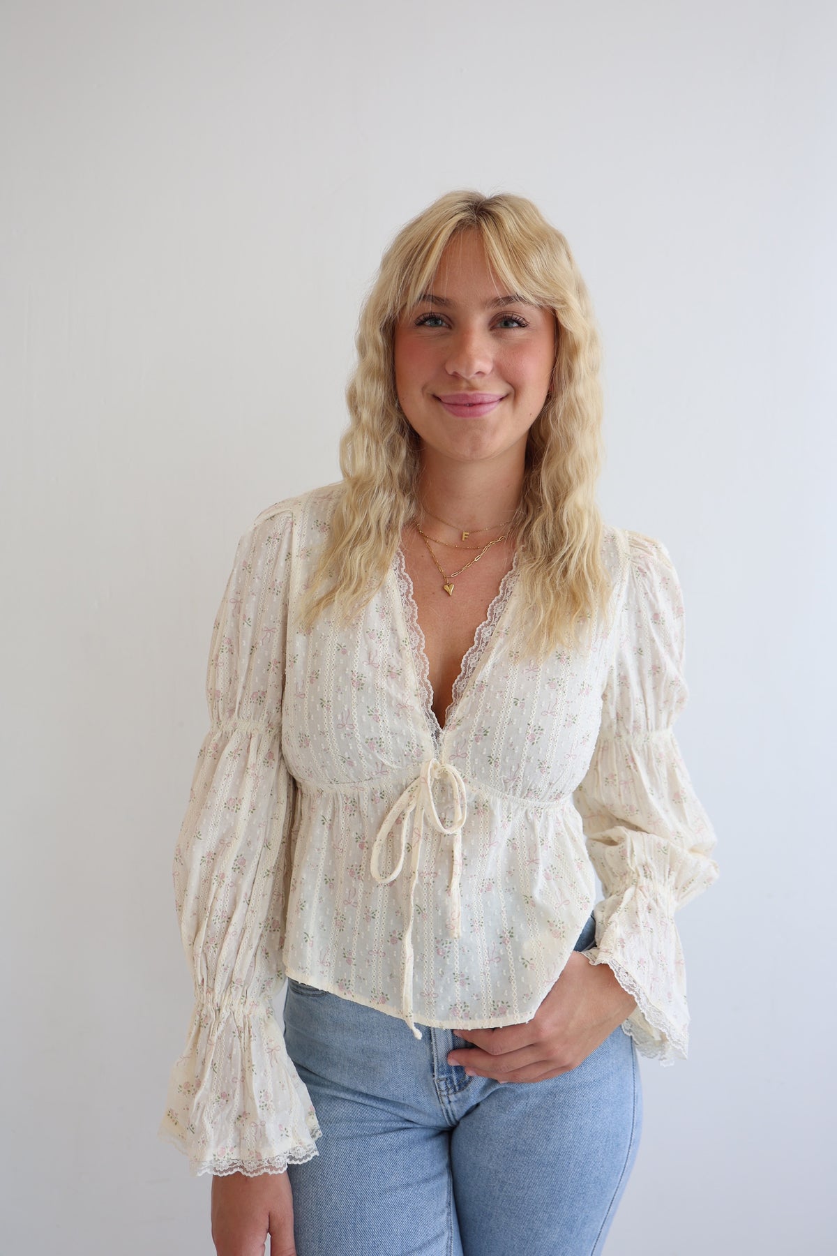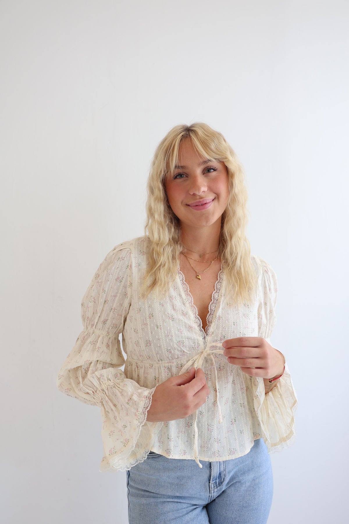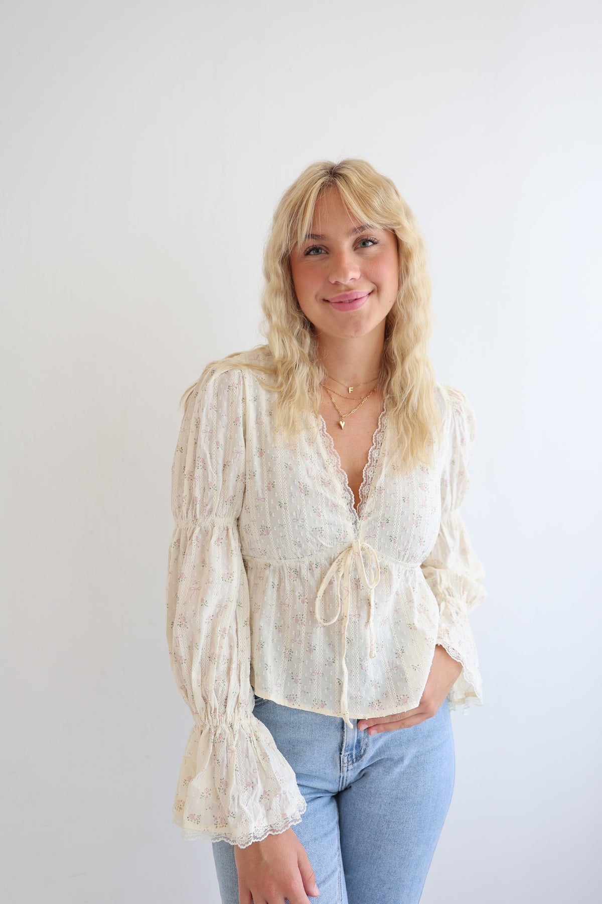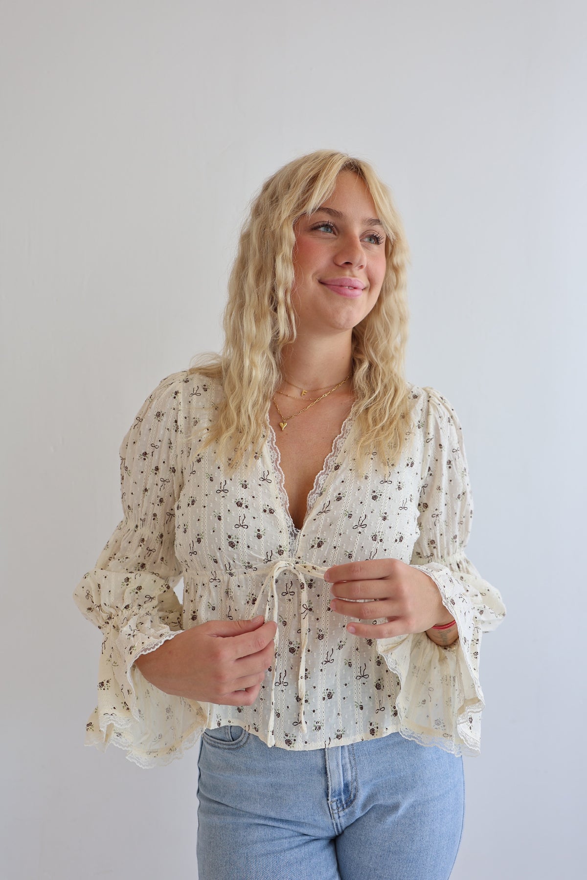 • Schößchenbluse mit kleinen Rosen und Schleifen als Print