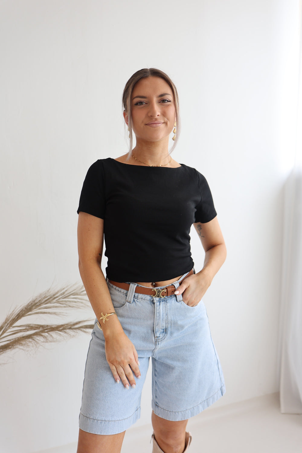 Gestreifter Kurzarm Cardigan mit Lochstrickmuster Cool Fit