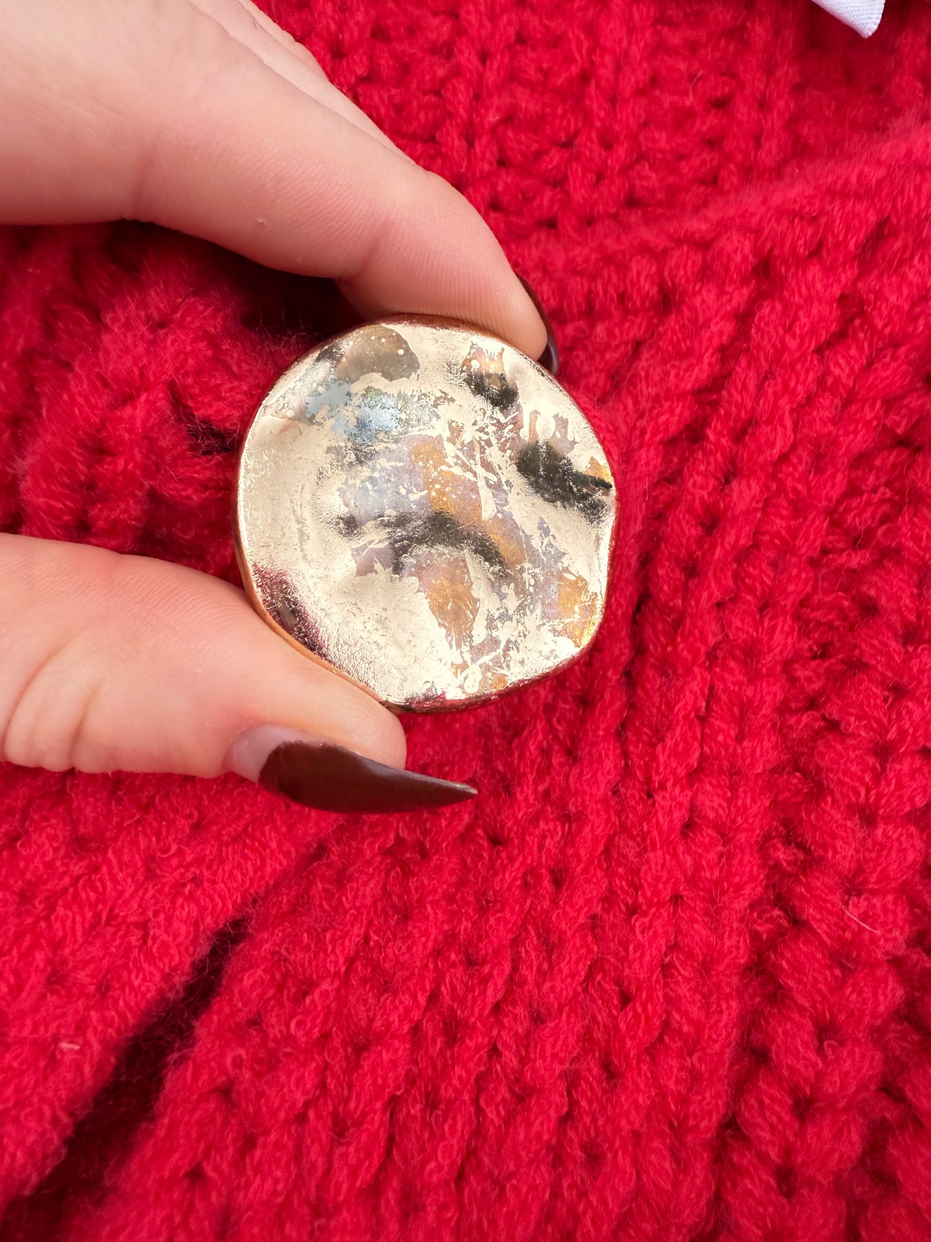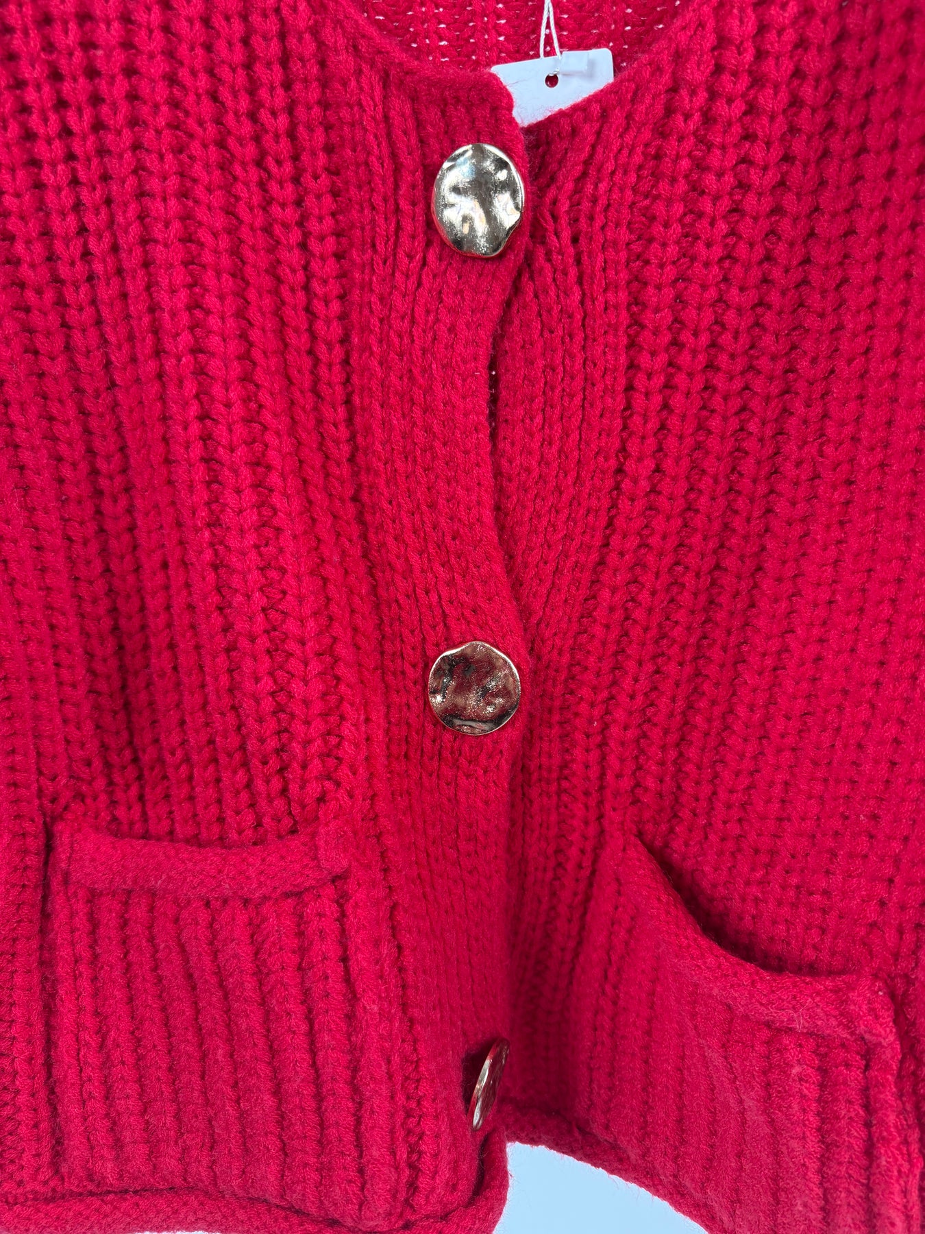 GROBE STRICKJACKE MIT GOLDENEN KNÖPFEN ROT (B-WARE)
