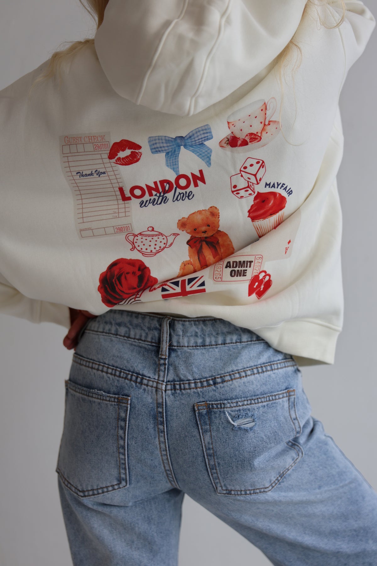 - Super weicher Oversize Hoodie mit der Aufschrift “Mayfair London“ auf der Vorderseite und Print auf der Rückseite