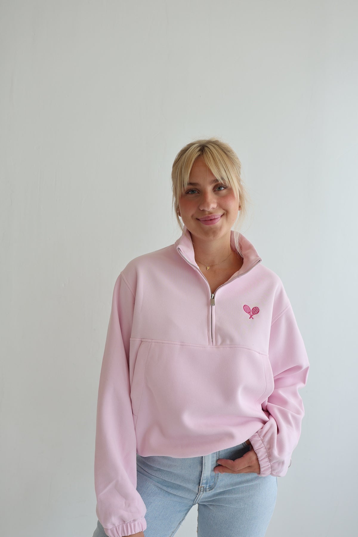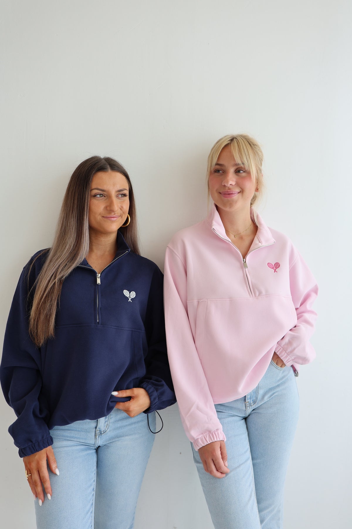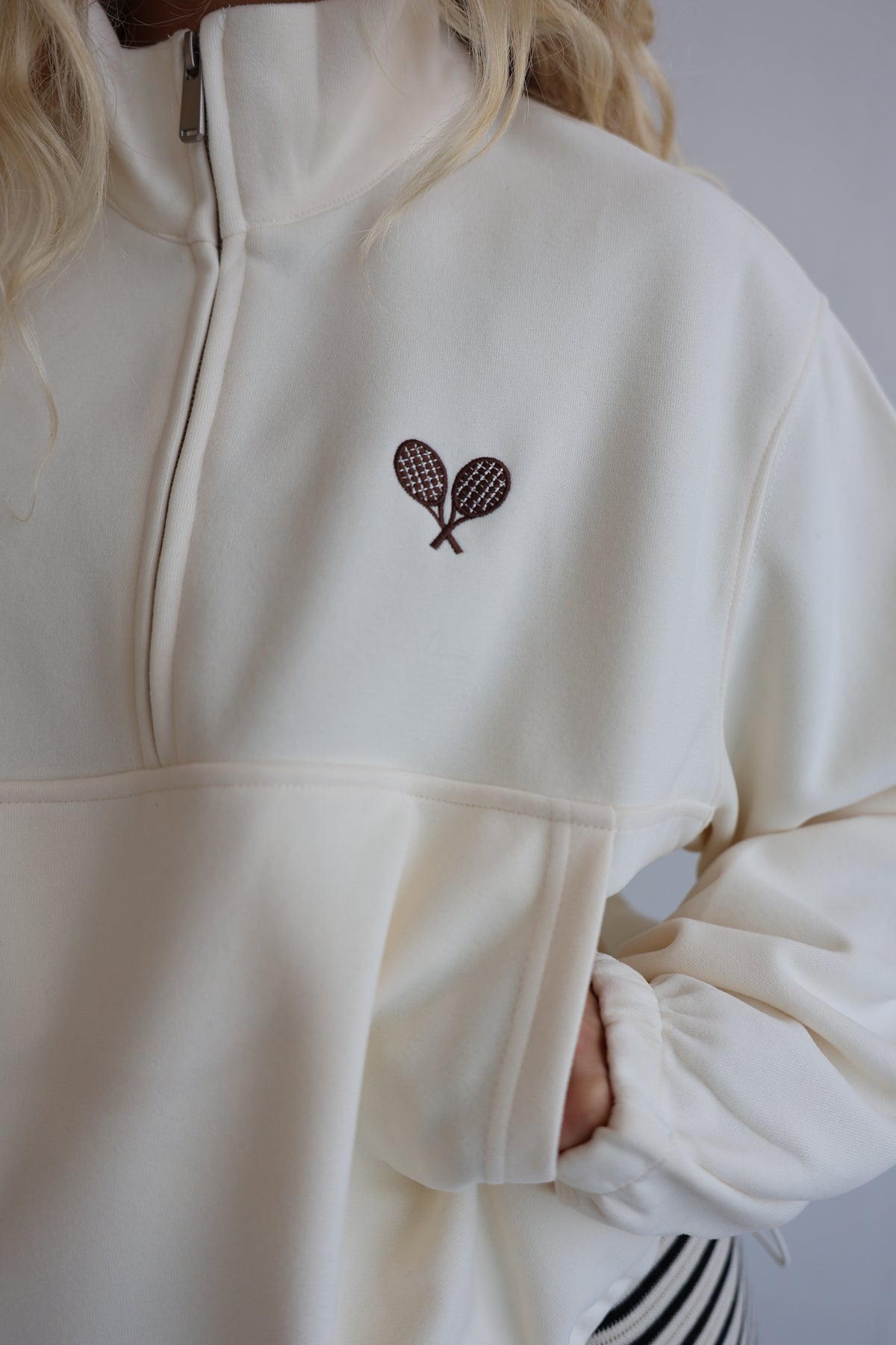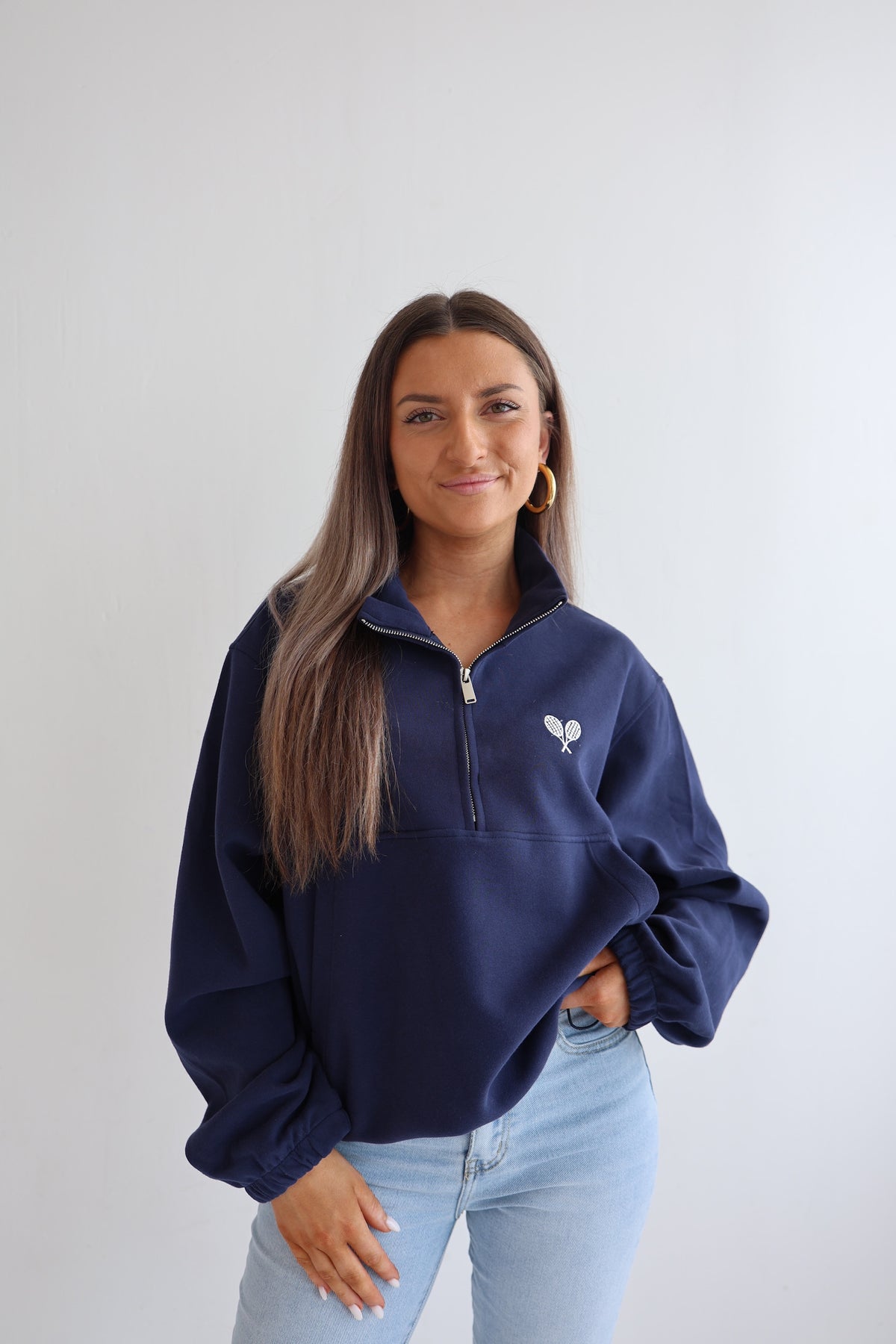 • lockerer Sweater mit aufgestickten Tennisschlägern