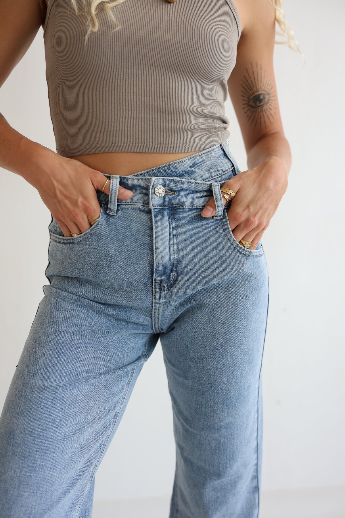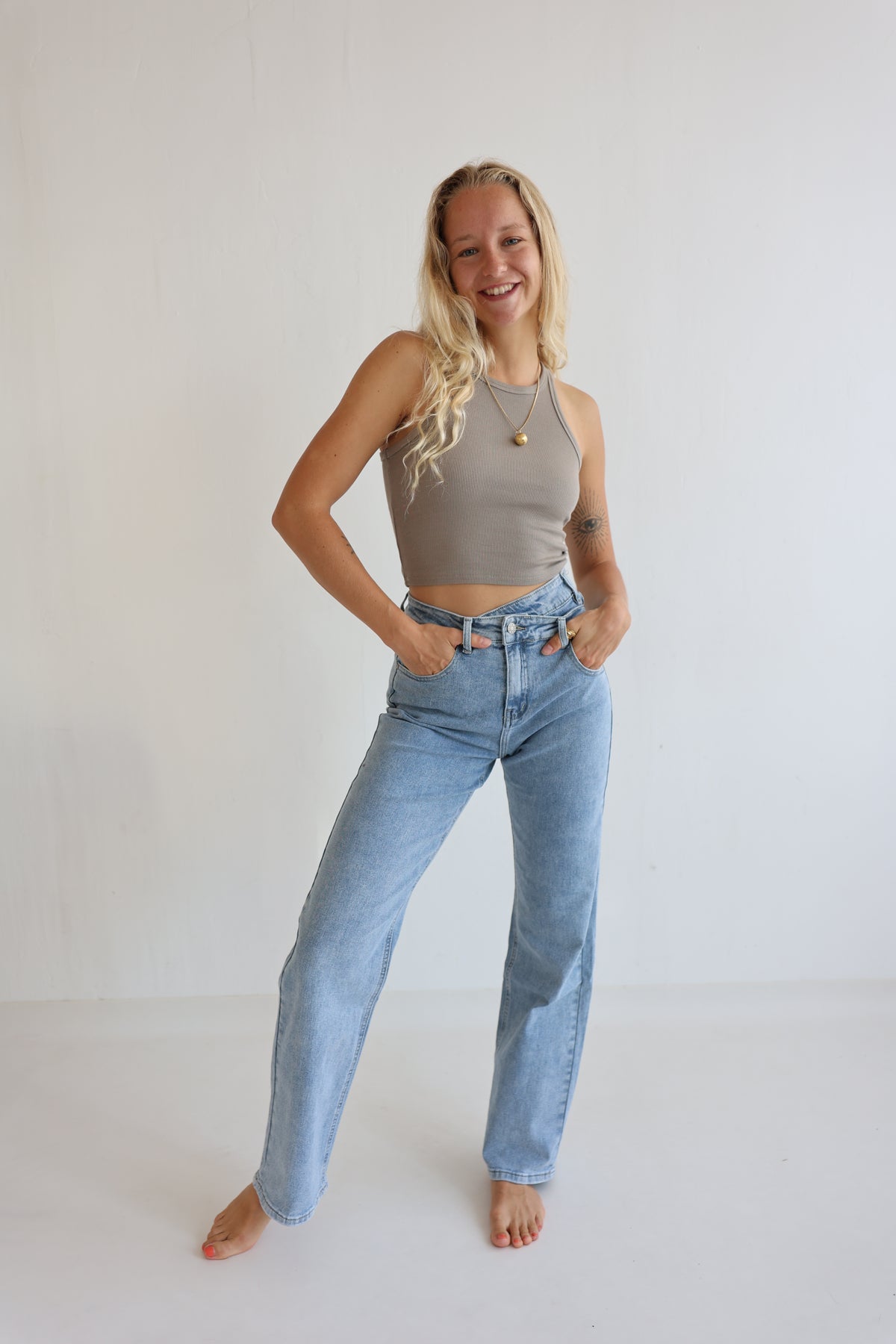 - super schöne Jeans mit asymmetrischem Bund
