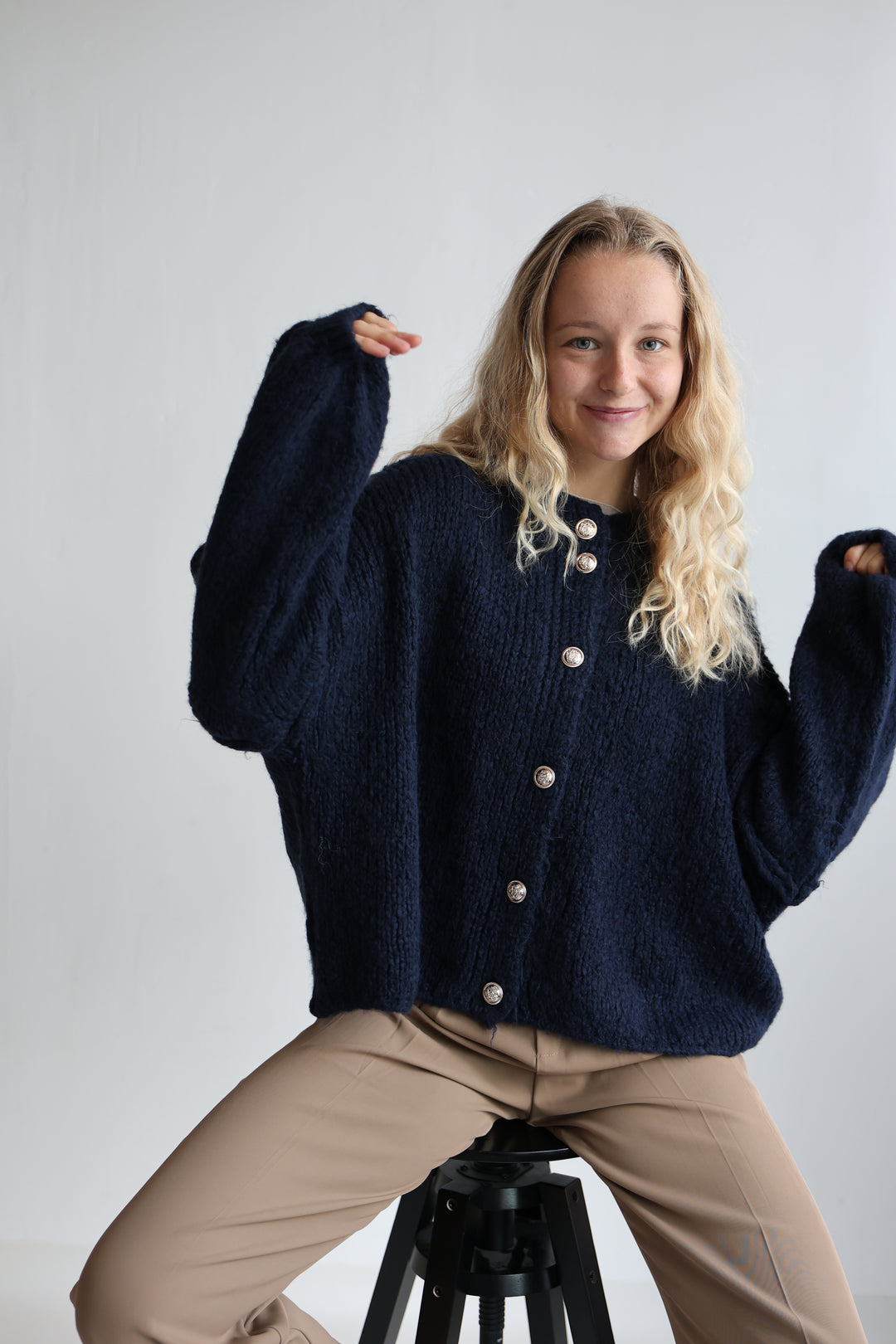 Langer Oversize Cardigan mit goldenen Manschettenknöpfen Claire