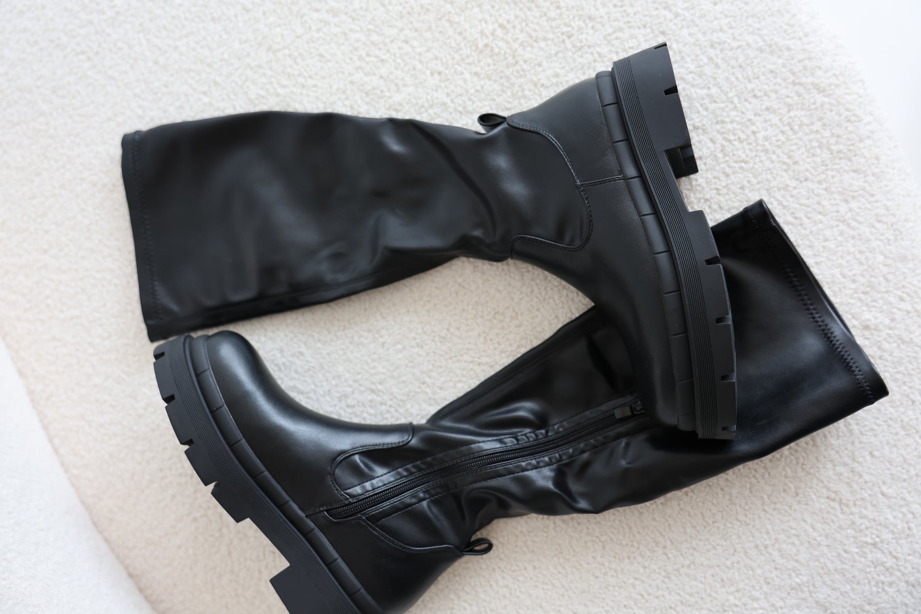 - Lange Stiefel in Glattlederoptik (100% vegan)