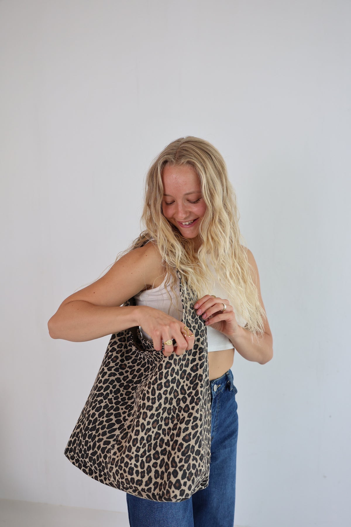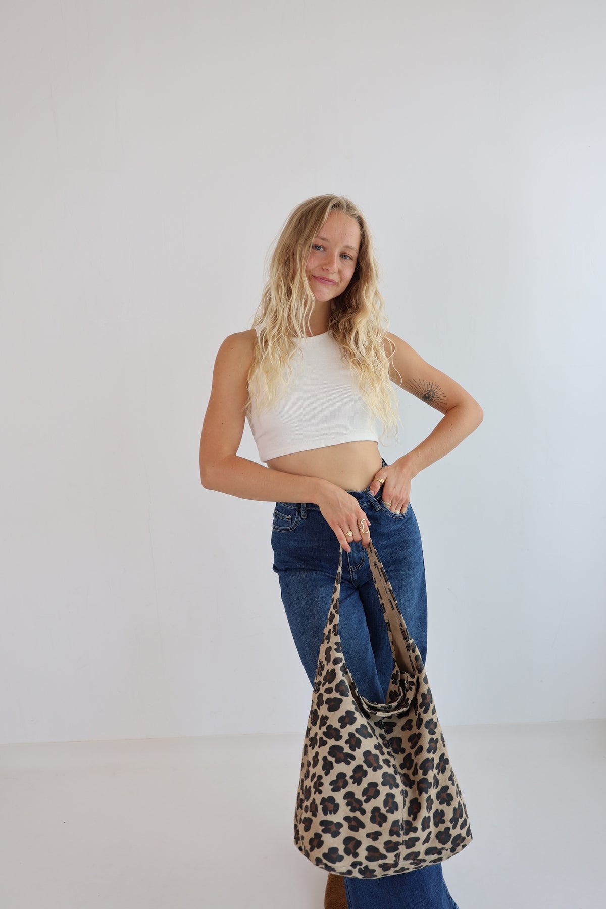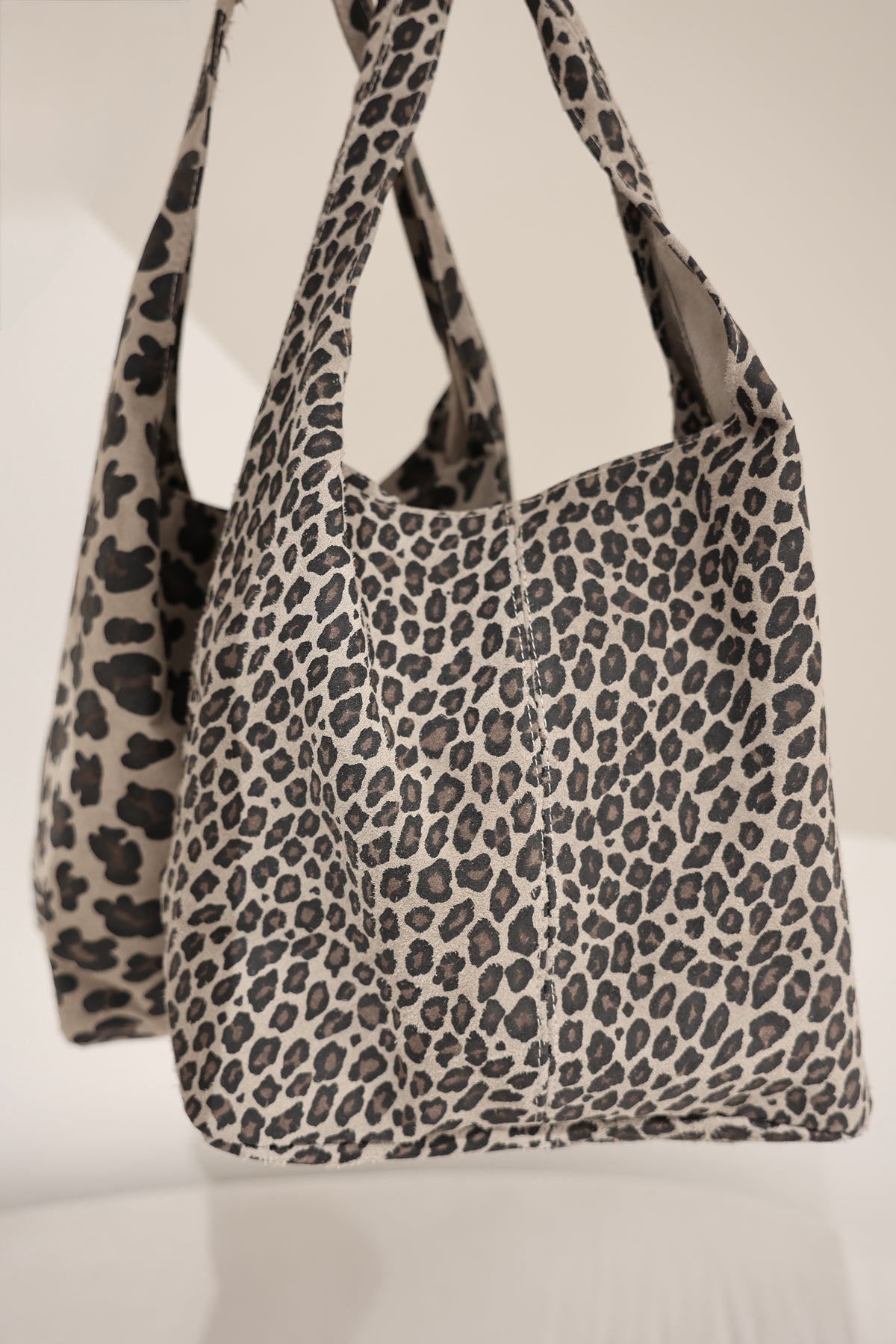 • Handtasche aus Wildleder mit Leoprint