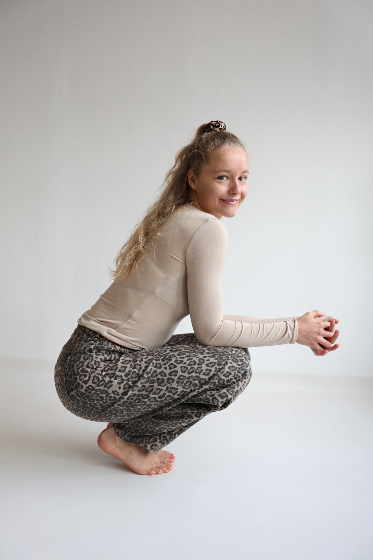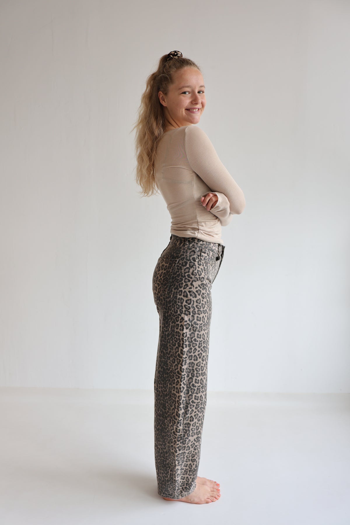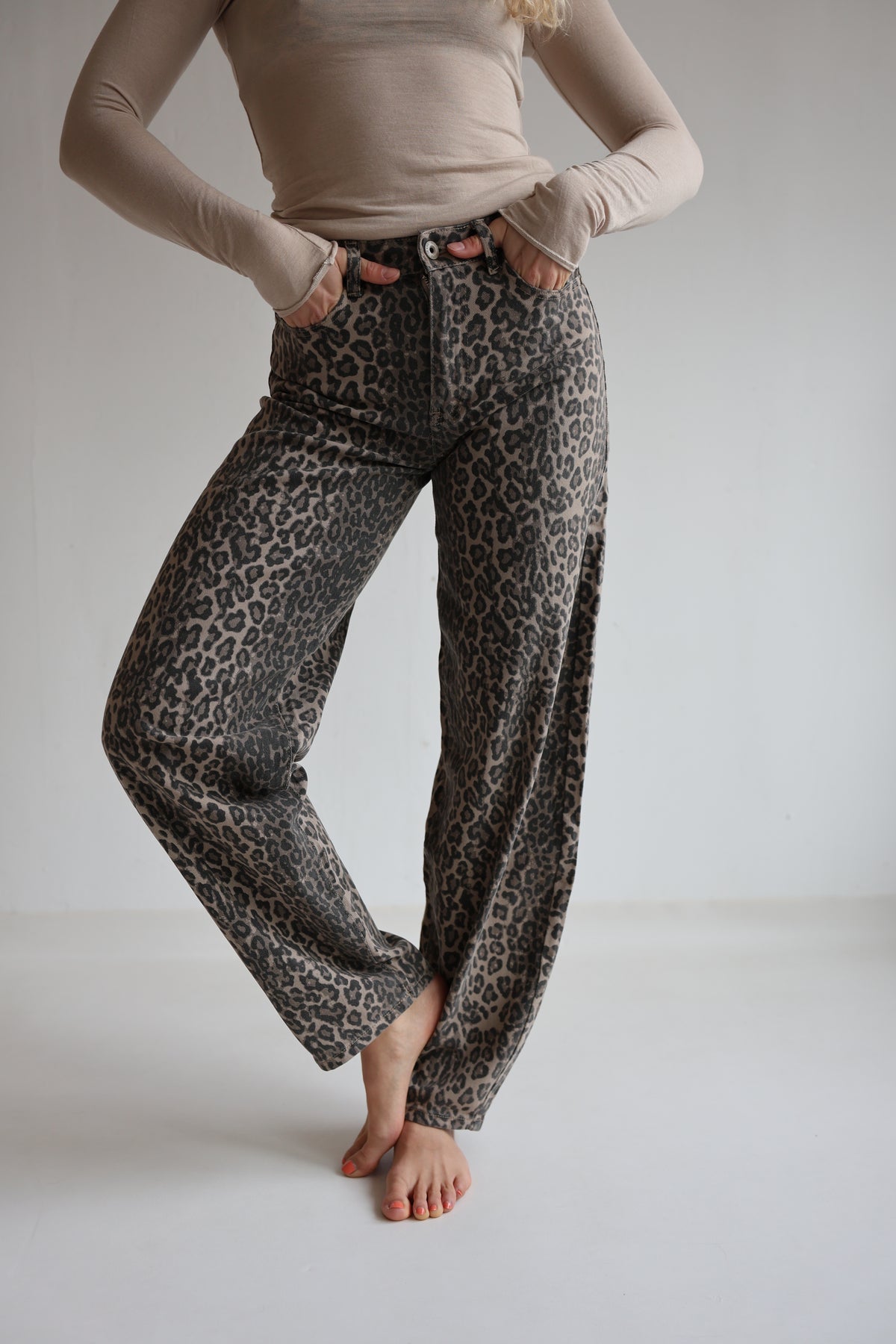 • super bequeme Jeanshose mit weitem Bein und Leoprint
