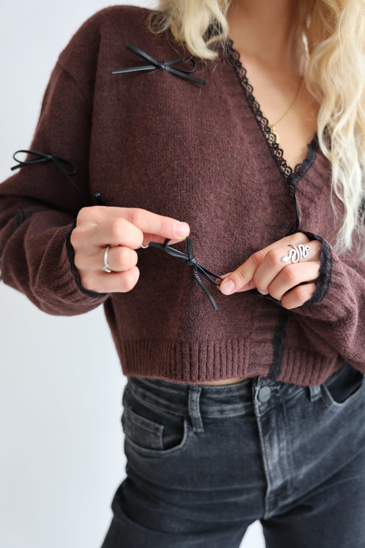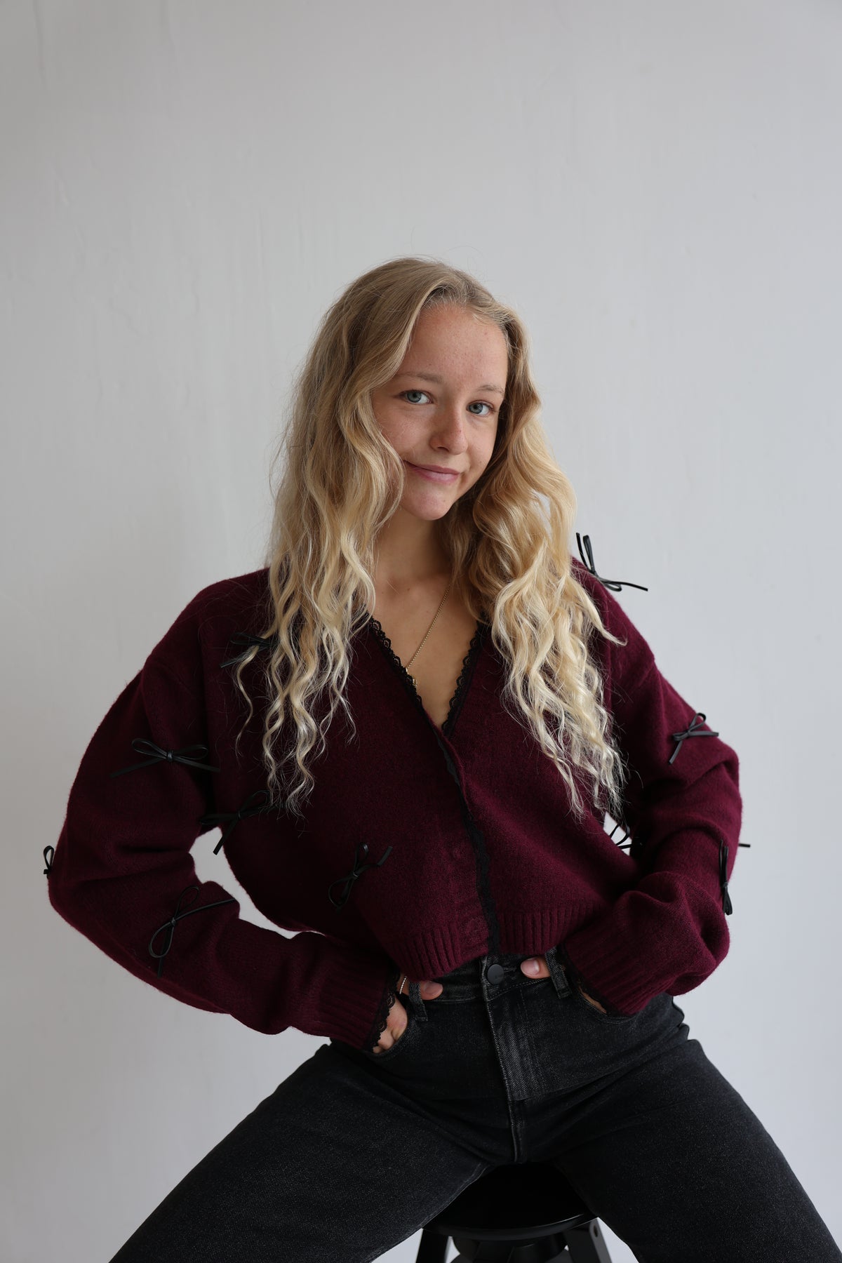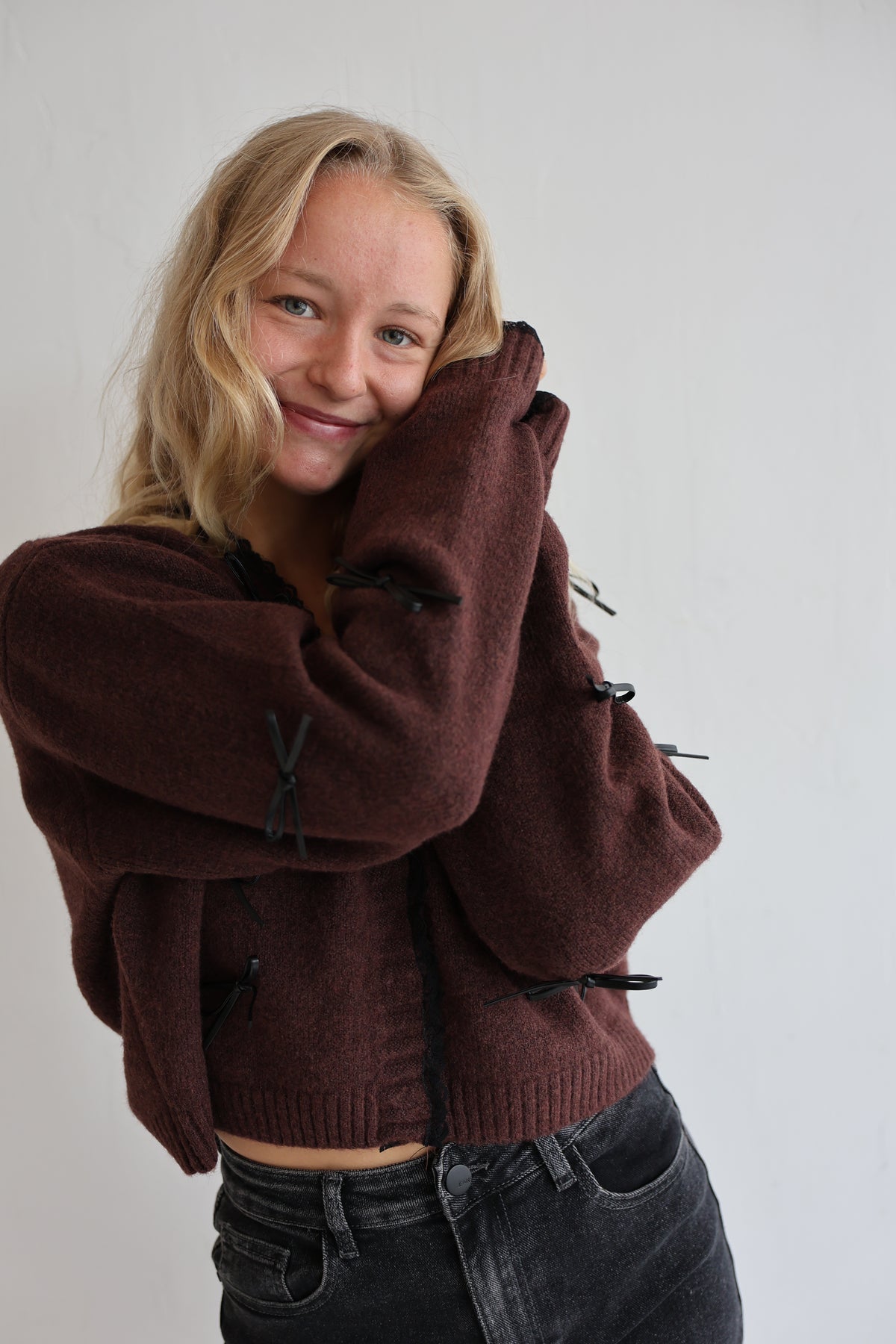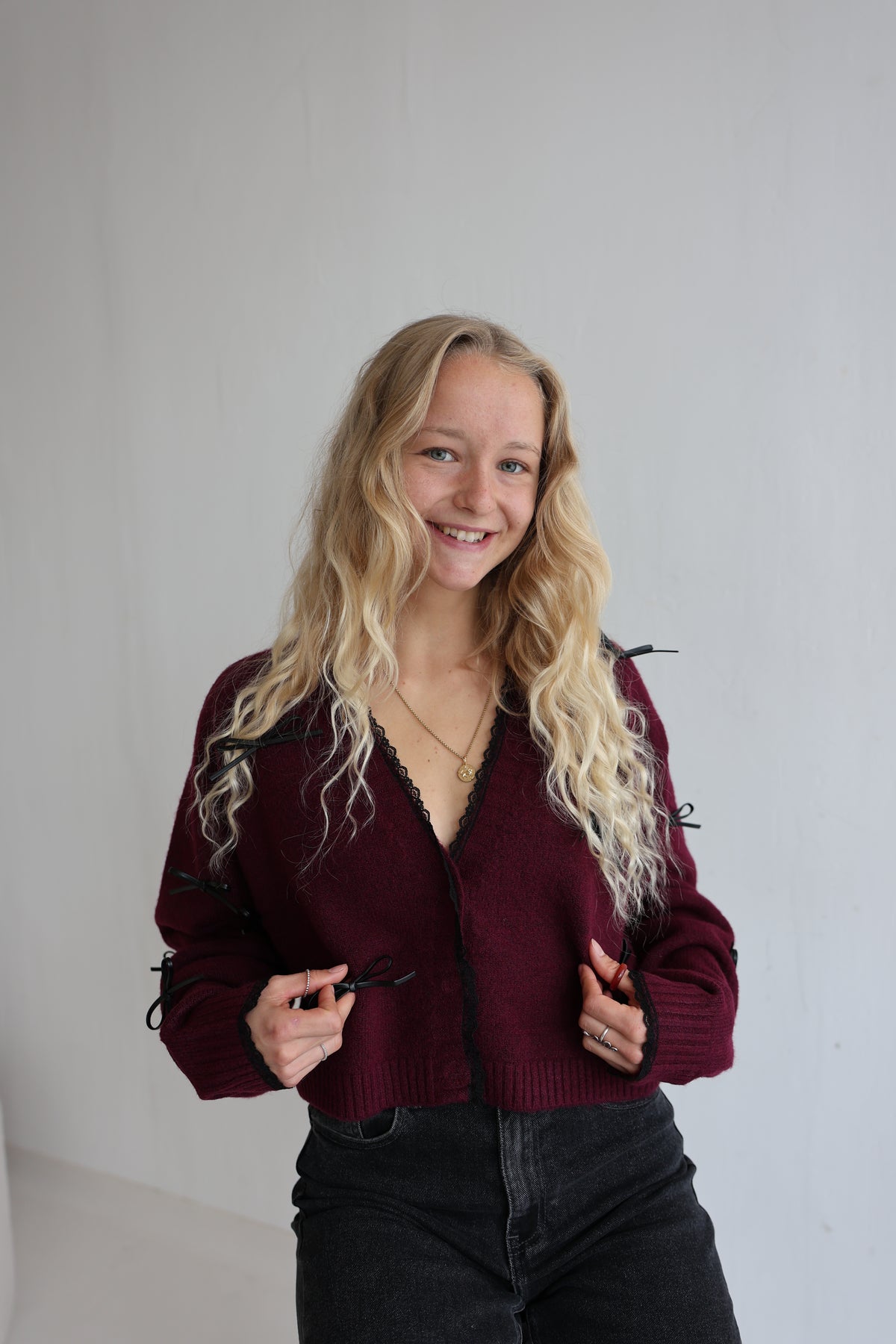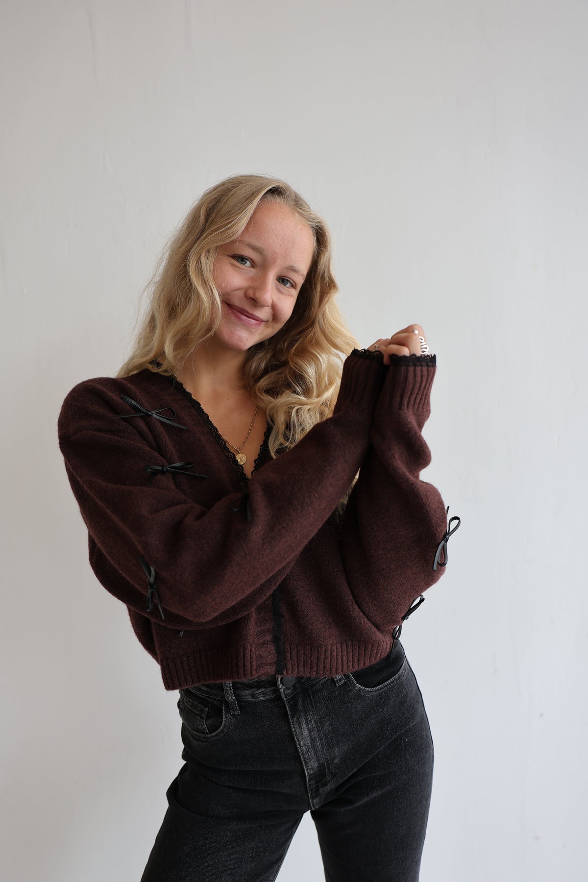 • Wunderschöner Cropped Cardigan mit kleinen schwarzen Schleifen