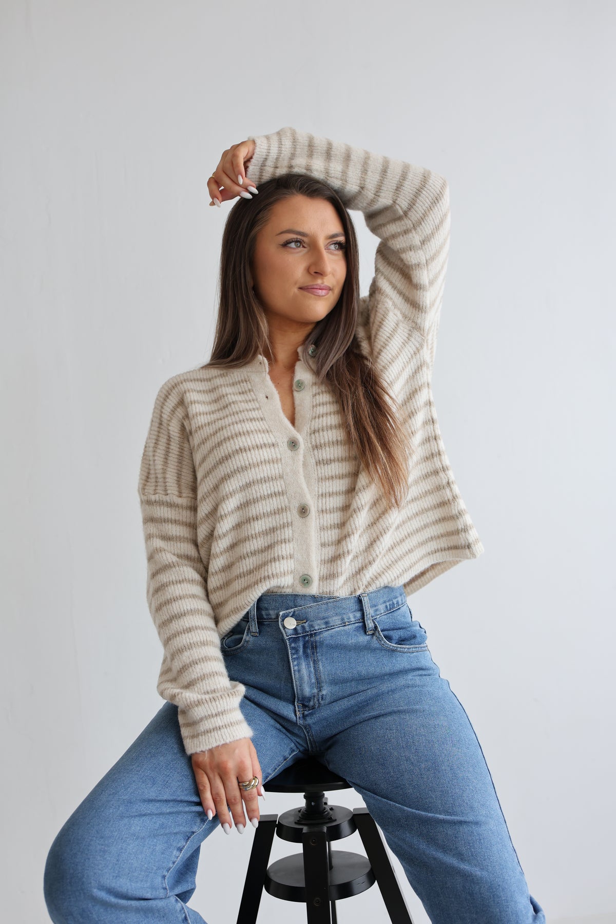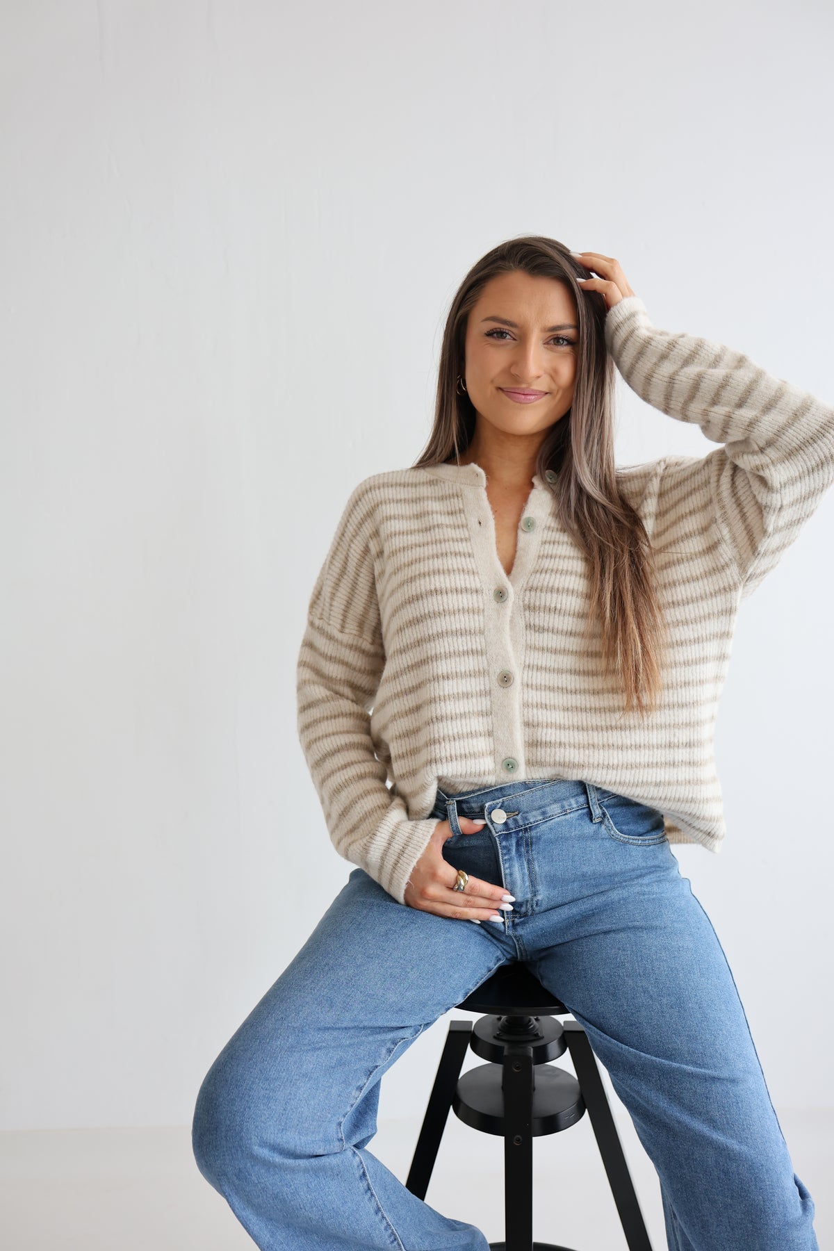 • Extrem weicher und kuscheliger gestreifter Cardigan