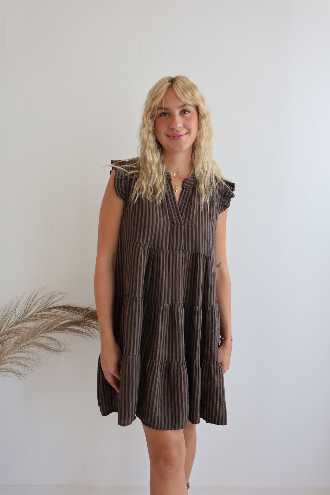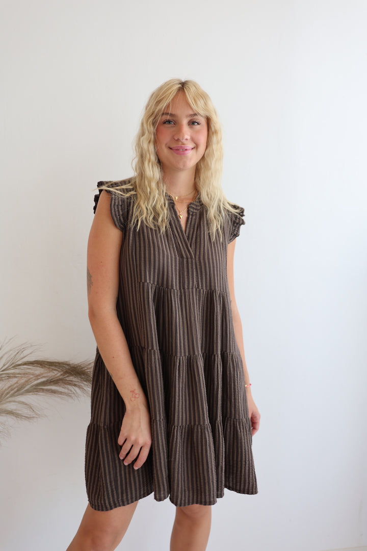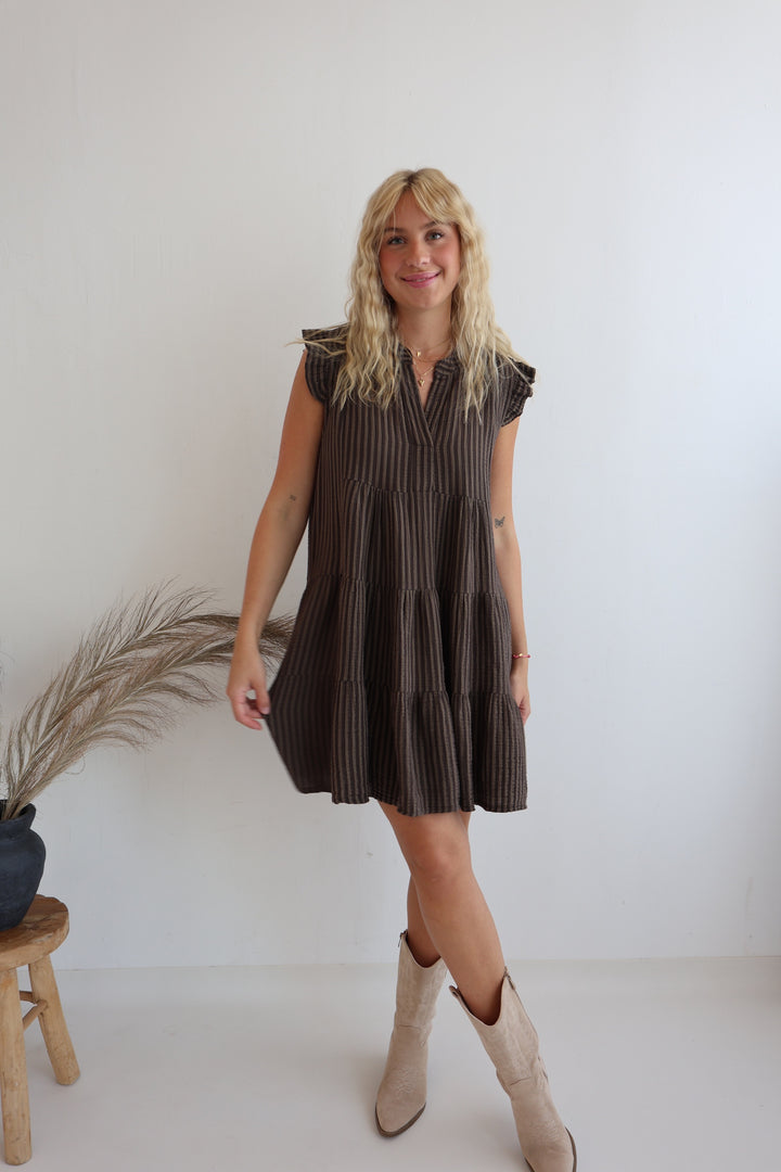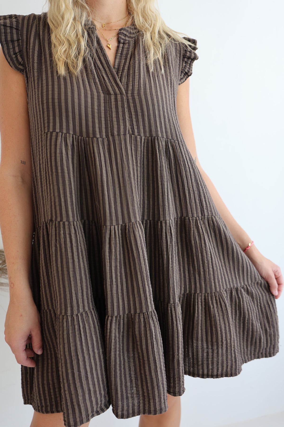 Gestreiftes Musselinkleid Mocca