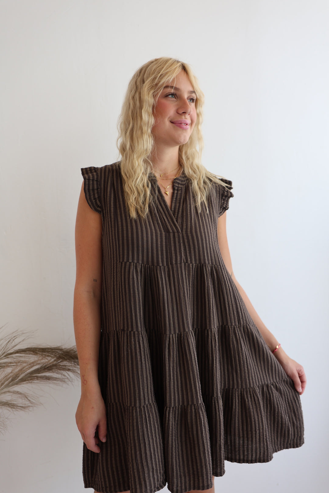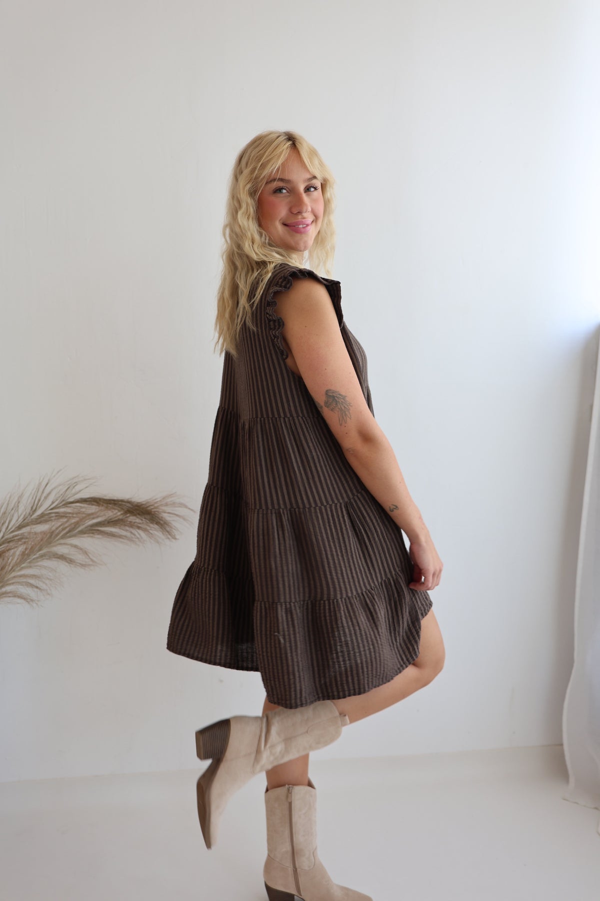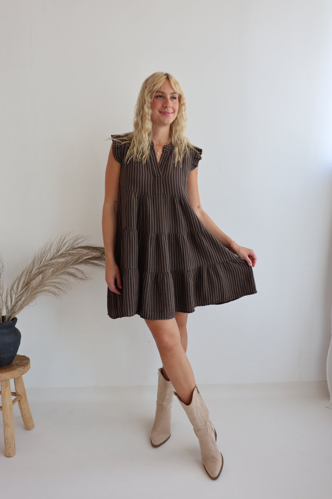 Gestreiftes Musselinkleid Mocca