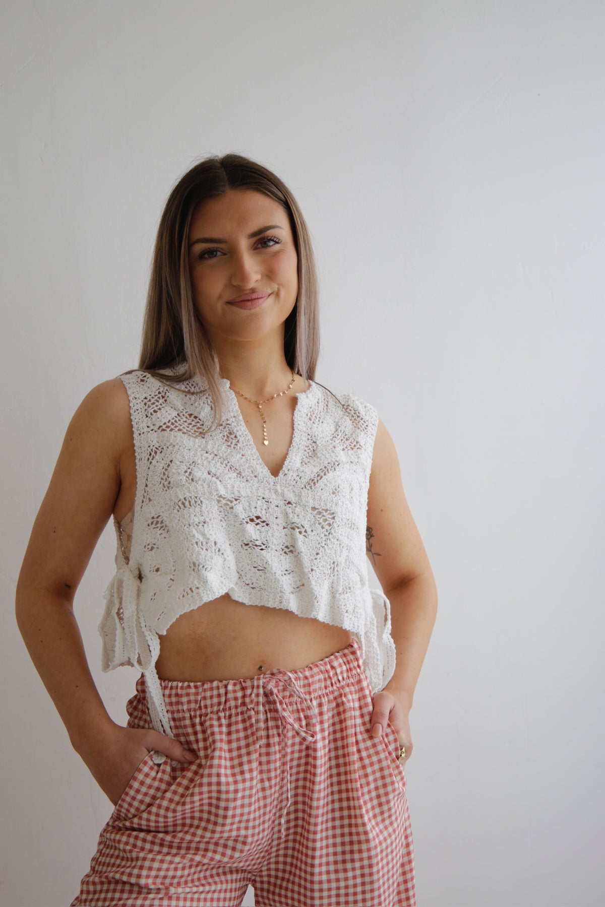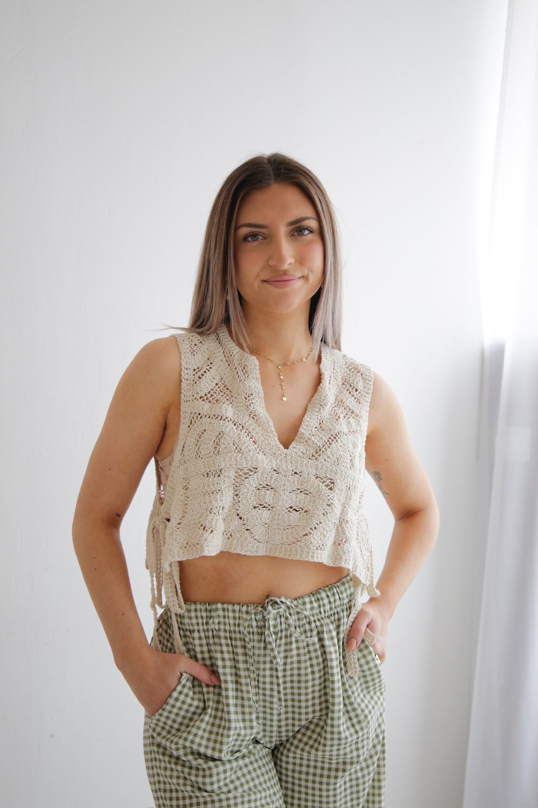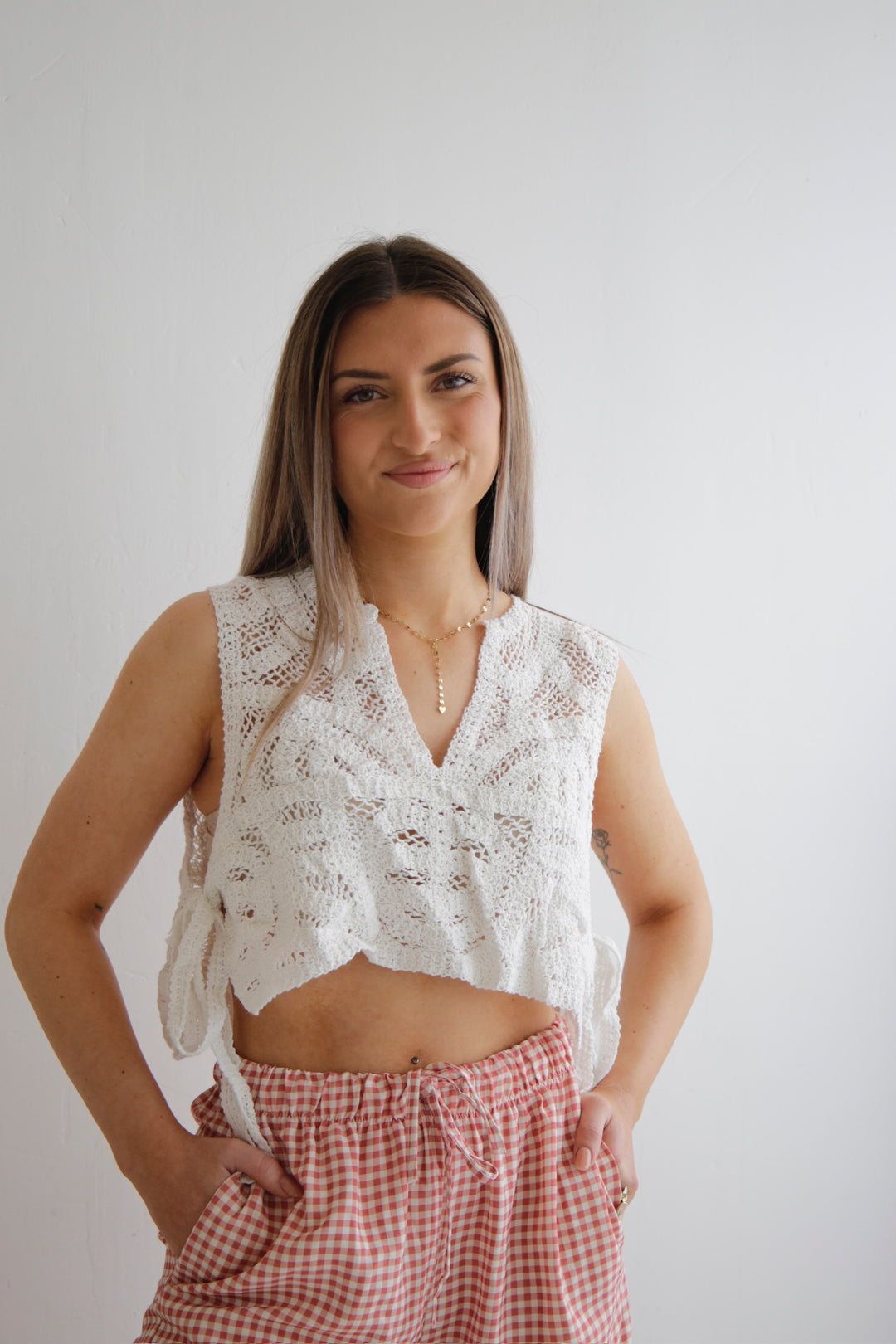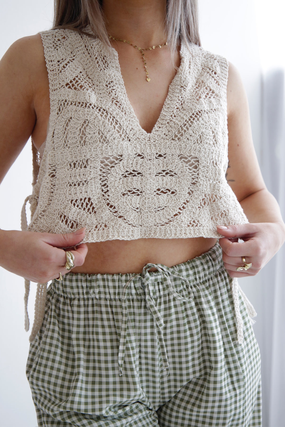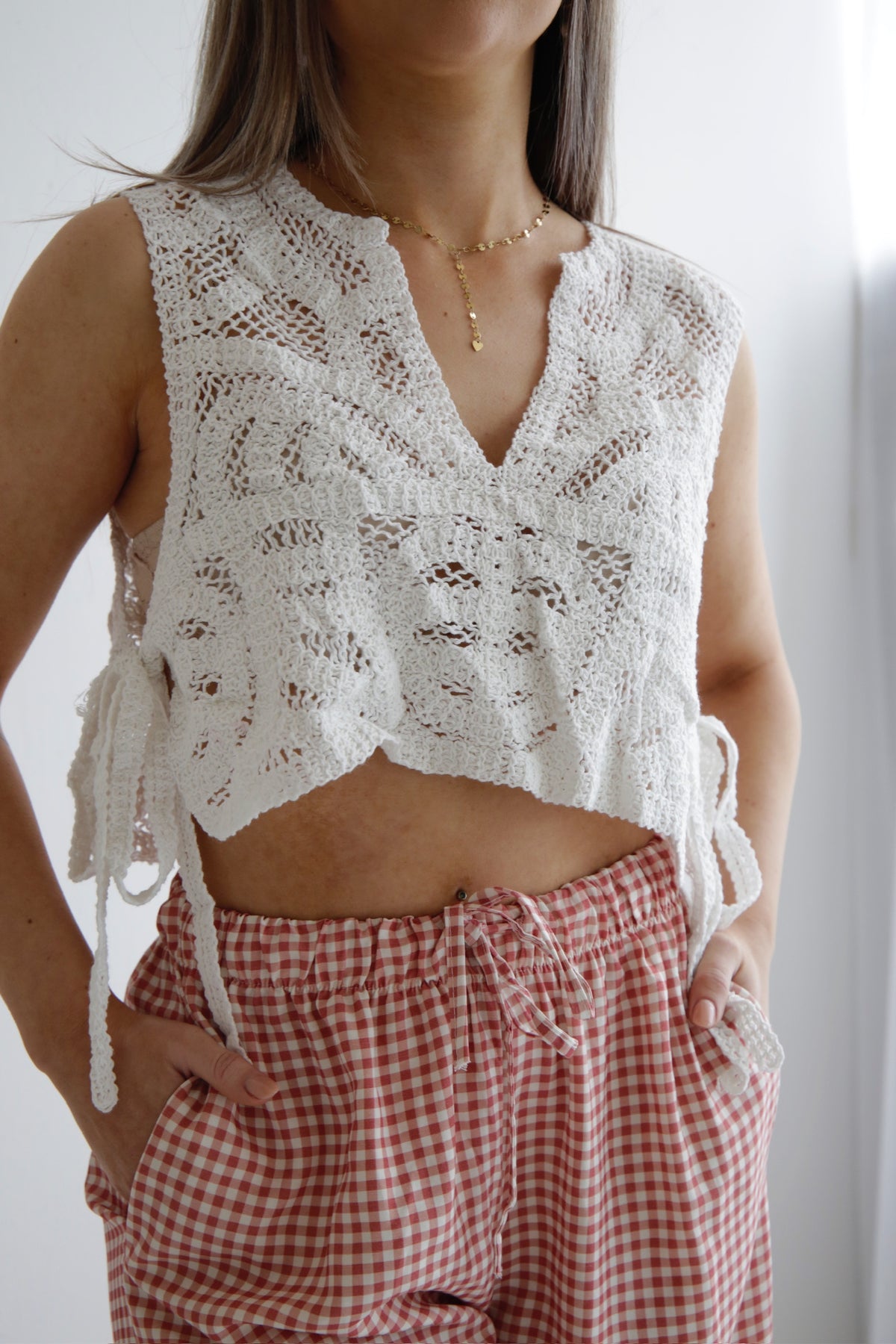 • cropped Häkelshirt zum Binden