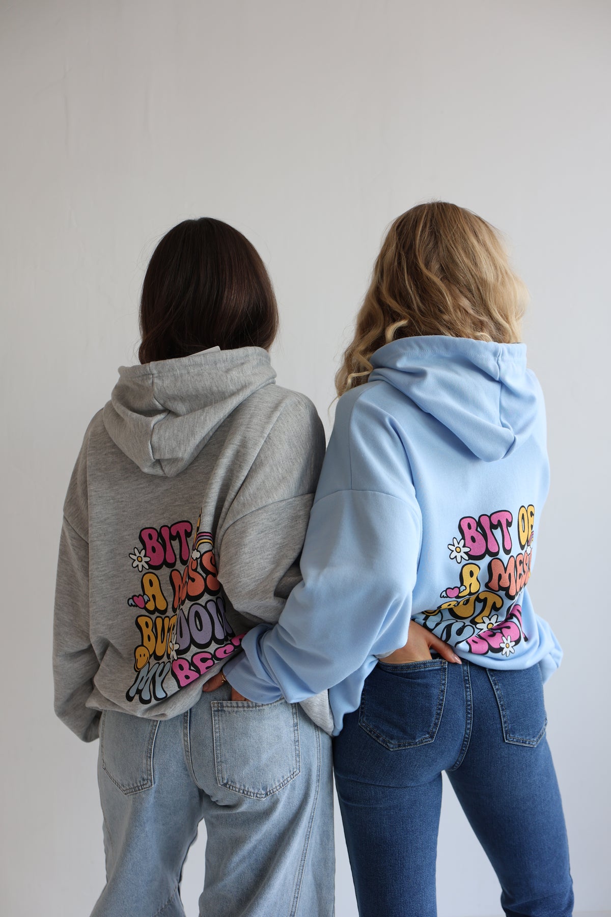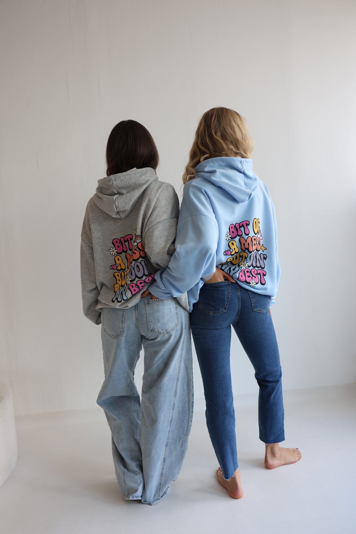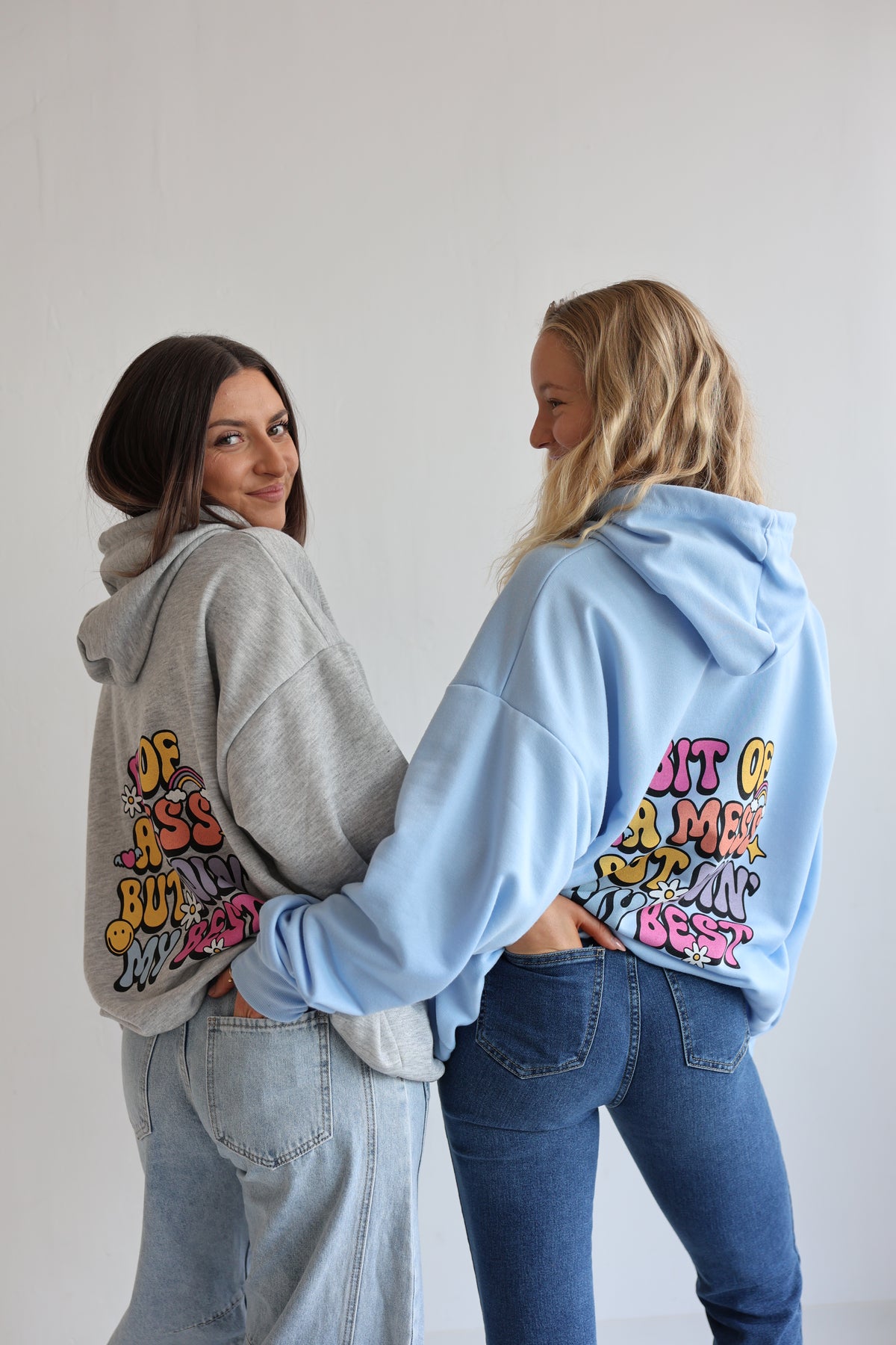 • Super weicher Oversize Hoodie mit der Aufschrift “Bit of a mess but doin my best“ auf der Rückseite und auf der Vorderseite