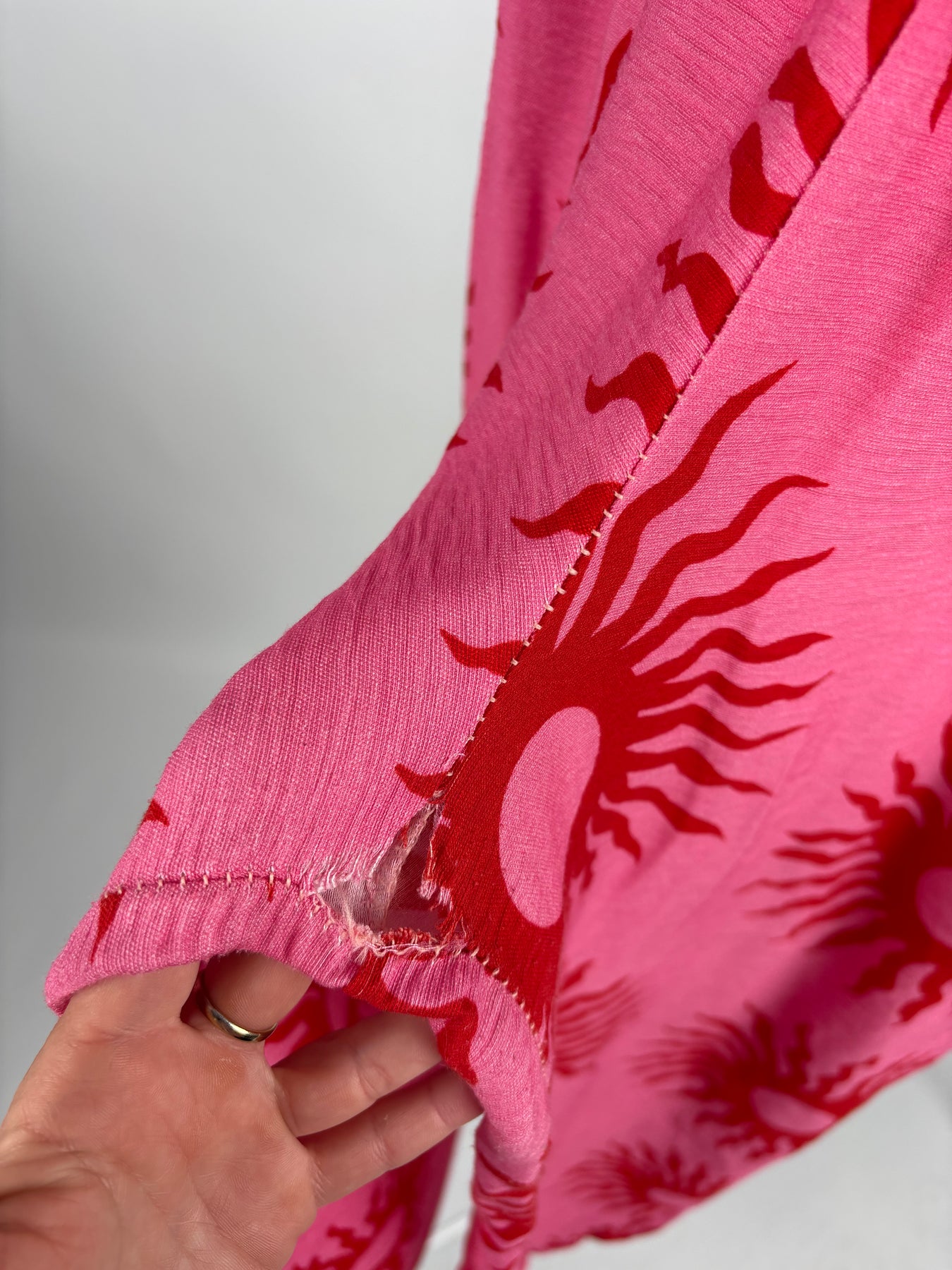 - Zwischen den Beinen gerissen (siehe Bild)