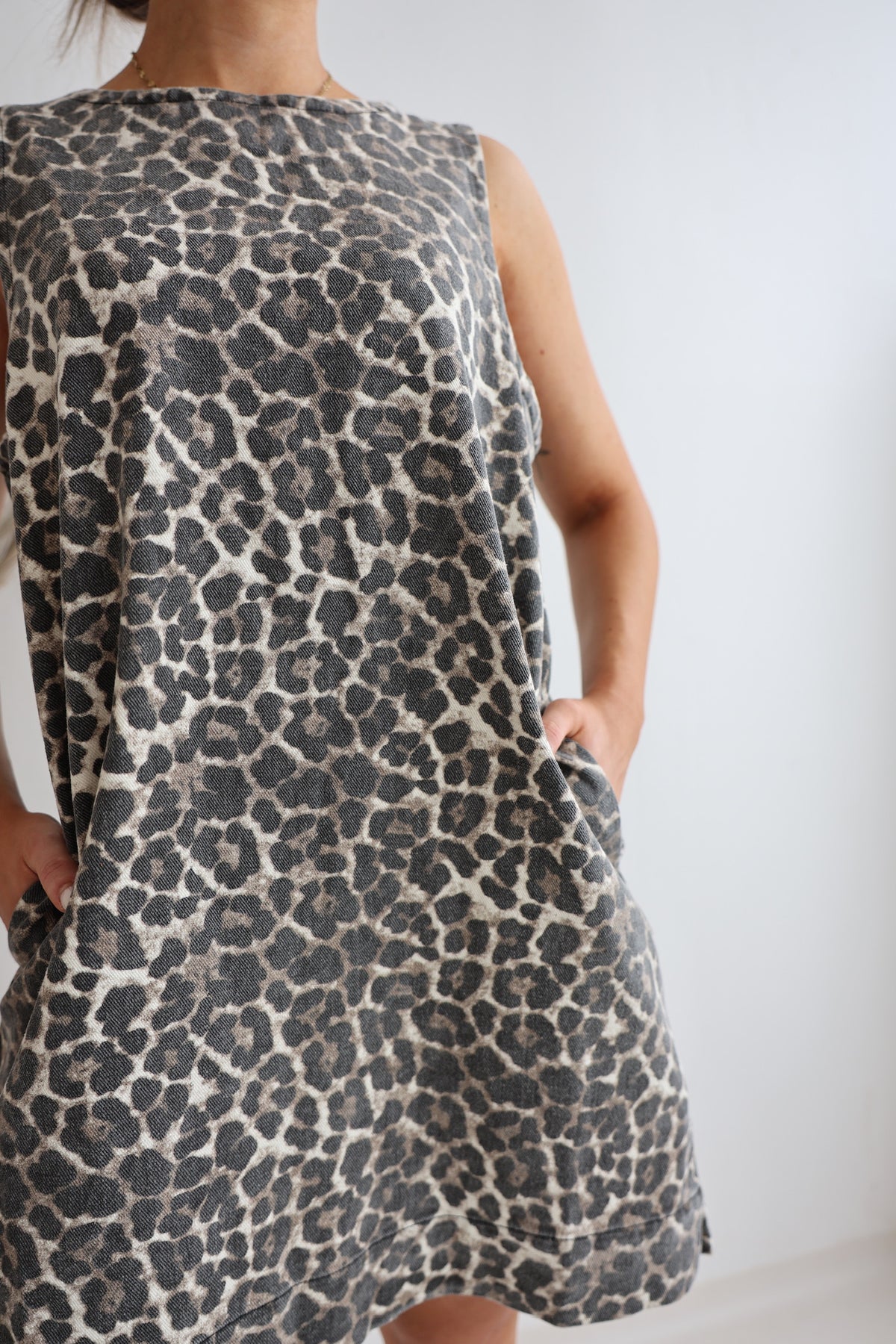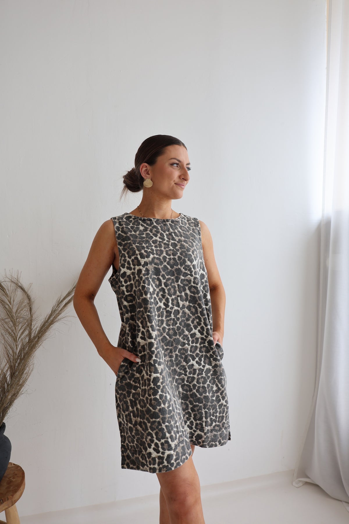 • Wunderschönes Kleid aus Jeans mit Leoprint