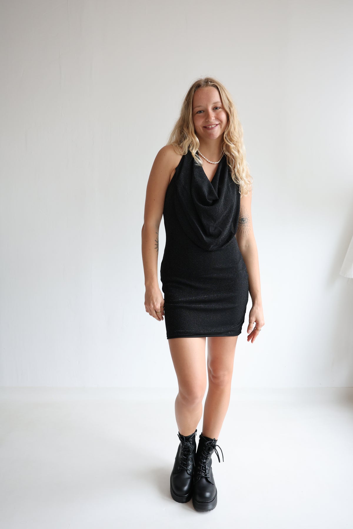 - Kurzes Kleid mit Wasserfallausschnitt